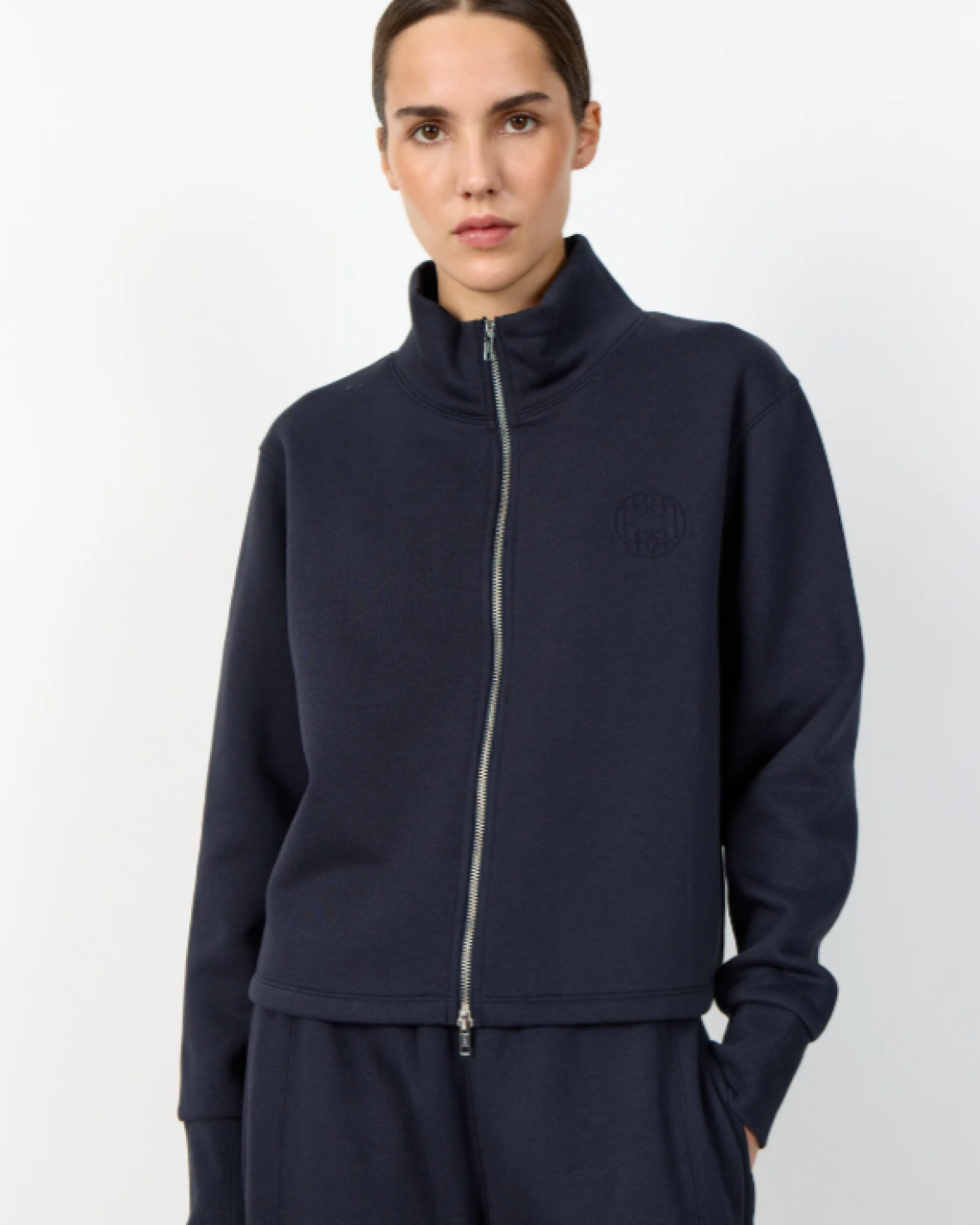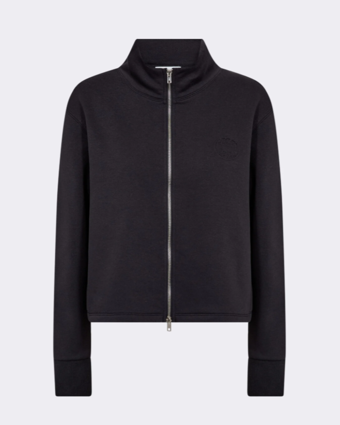 LR-NUKA 16 SWEATHIRT/JAKKE er en behagelig jakke fremstillet af 80 % økologisk bomuld og 20 % genbrugspolyester. Jakken har en høj krave, lynlåslukning i hele længden og ribbede manchetter med et diskret broderet emblem. Sæt den sammen med dine yndlingsjeans eller afslappede bukser for et elegant og cool look.
