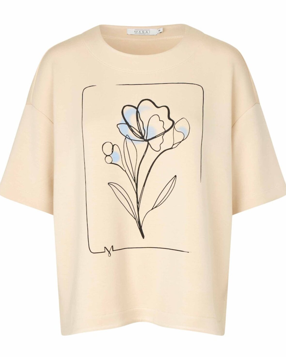 MADOMINAN TOP - MASAI Skab et feminint udtryk med denne tidløse T-shirt med håndmalet blomsterprint. Den er fremstillet i en smørblød, formfast jerseykvalitet, der føles luksuriøs mod huden og holder sin form vask efter vask. Det løse snit og de sænkede skuldersømme tilfører et afslappet modspil til det feminine print, mens det nye Masai-ikon diskret er indarbejdet i designet. Style T-shirten med jeans eller løse bukser for et ubesværet, men stilfuldt look.Kvalitet: 80 % Viskose, 15 % Polyester, 5 % Elastan