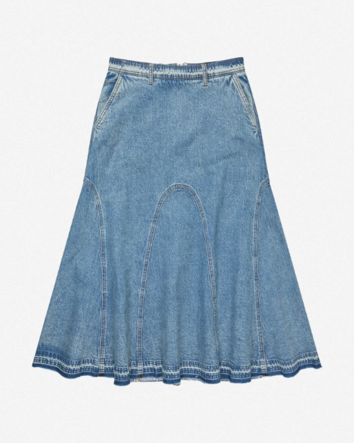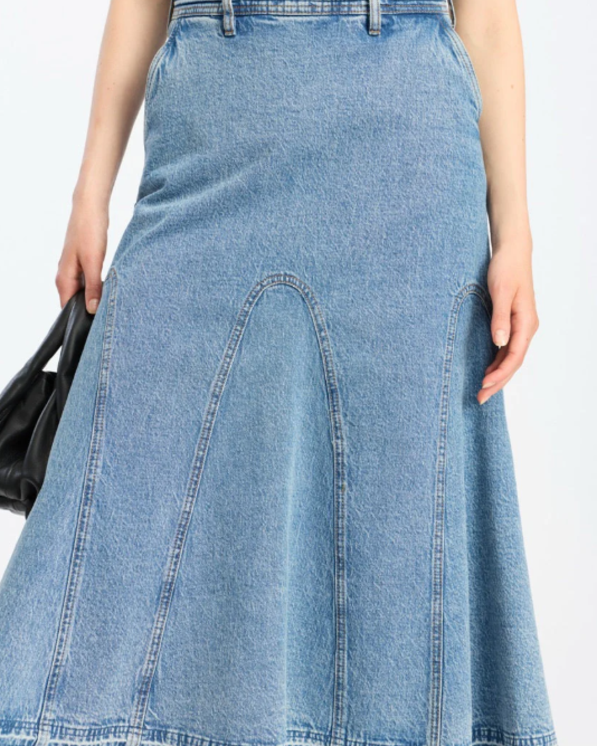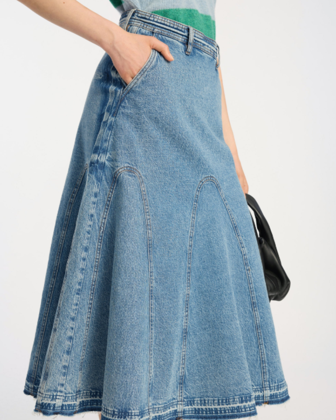 BRAYLIN NEDERDEL - MUNTHE er fremstillet i denim og designet i en flatterende midi-længde med let flare. Modellen har strukturerede sømlinjer og en regulær silhuet.