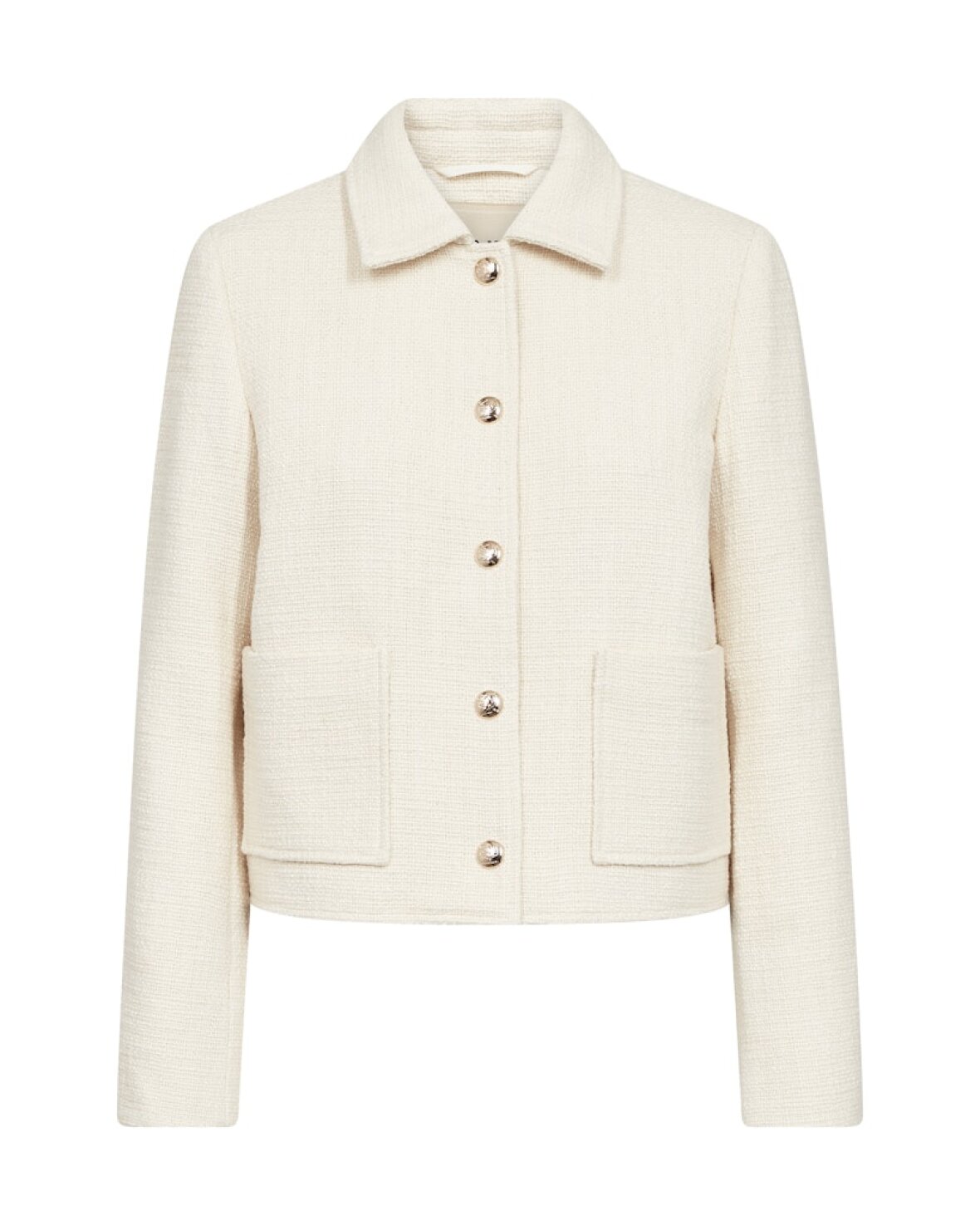 MMNILSA BOOB JACKET - MOS MOSH En moderne boucléjakke med klassisk krave og knaplukning. Den er designet med frontlommer og en lige pasform, der giver en tidløs, men struktureret silhuet – perfekt til lag-på-lag styling over både hverdags- og kontorlooks.