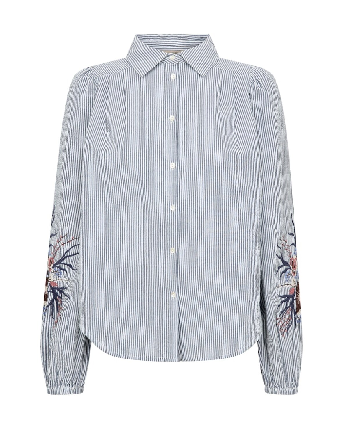 MMCIU OXFO SHIRT - MOS MOSH En klassisk bomuldsskjorte med smukt broderi på ærmerne, der tilfører et feminint twist. Den er designet i en tidløs silhuet med knaplukning og et blødt materiale, der kombinerer struktur med komfort – perfekt til både et elegant og afslappet look.