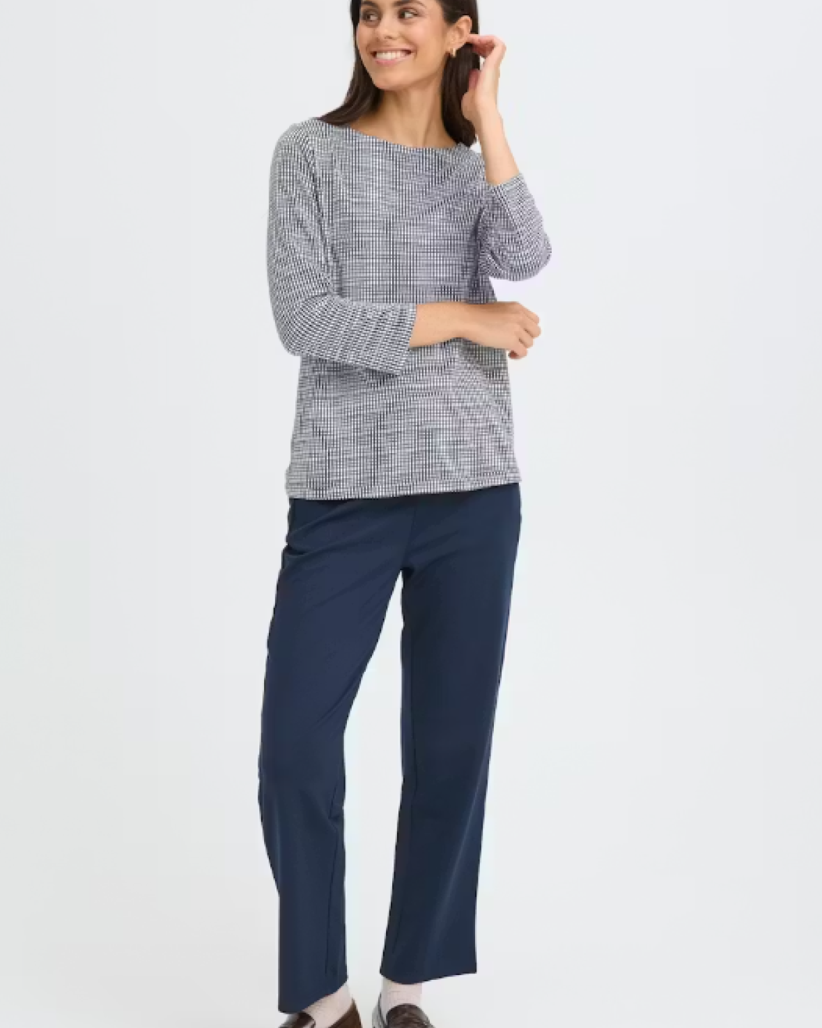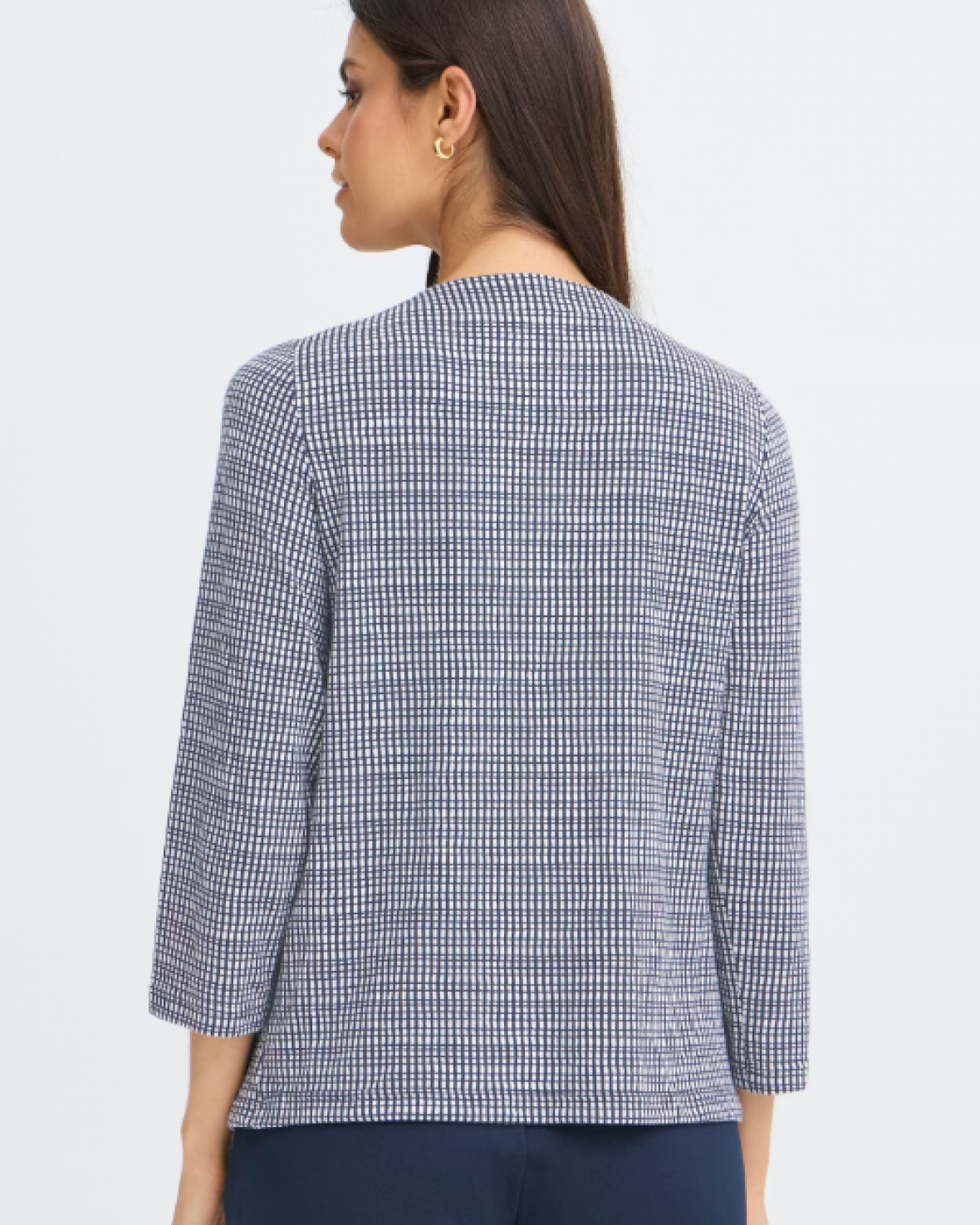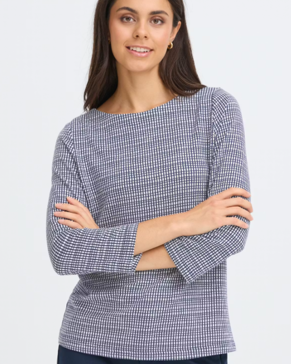 FRNIALA TEE 2 - FRANSA Denne top med ternet mønster har en lige pasform, rund halsudskæring og 3/4-ærmer. Blød struktur giver et cool look til enhver garderobe.Kvalitet: 62% Polyester, 38% Viskose