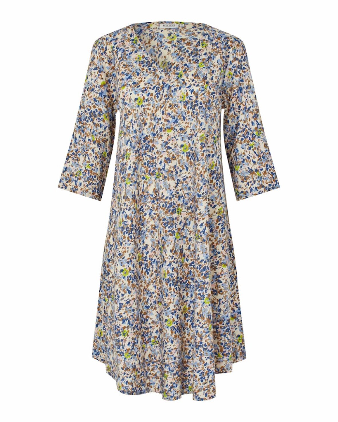 MaNora kjole-masai er en smuk blomstret kjole med rund hals og korte ærmerKvalitet:84 % Viskose, 16 % Polyamid
