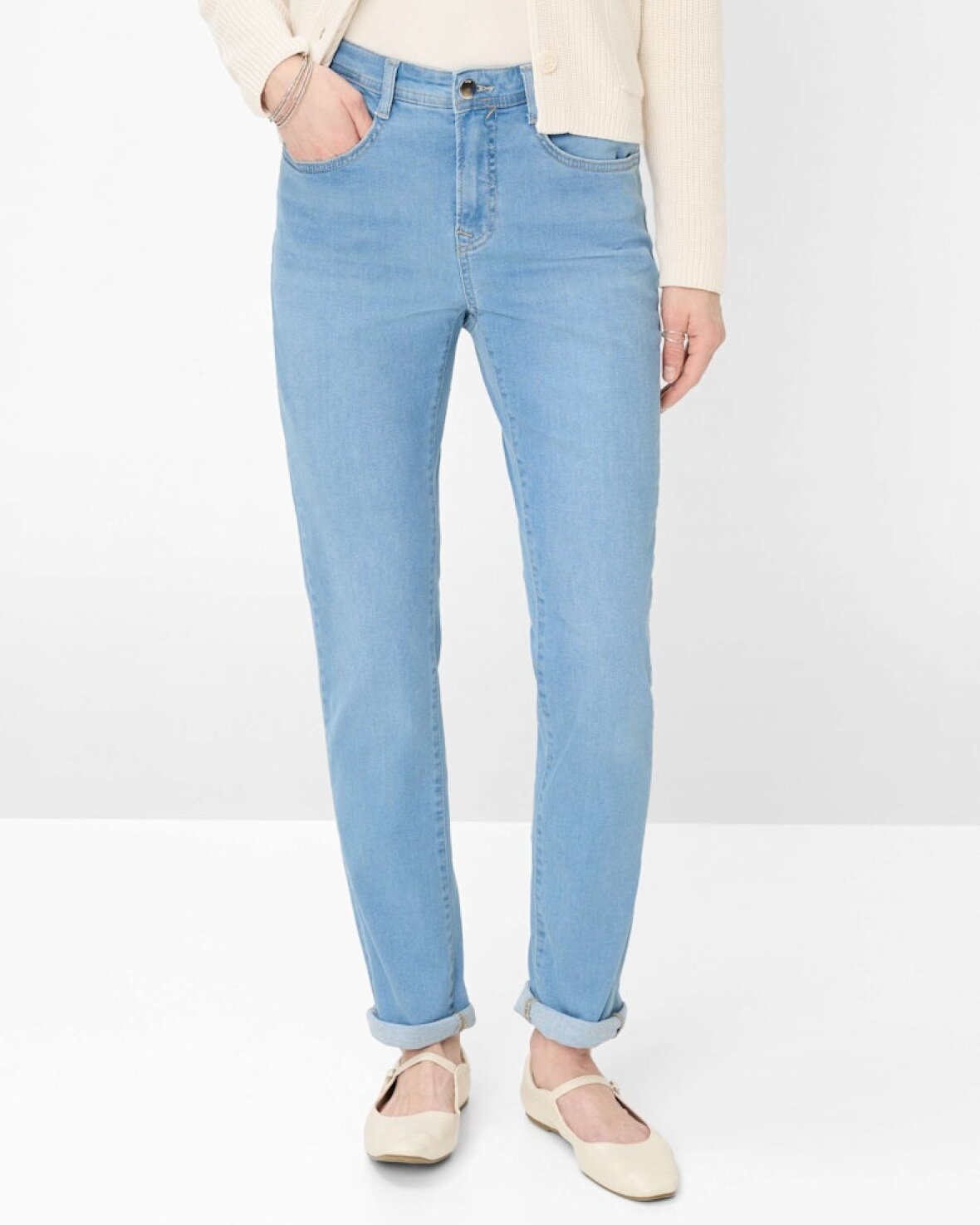 CAROLA BUKS - BRAX er en klassisk buks med en mere rummelig og afslappet pasform. Modellen har ekstra komfort omkring talje og hofter samt ben med let vidde, som giver god bevægelsesfrihed og et blødt fald. Et komfortorienteret design, der egner sig perfekt til både hverdagsbrug og afslappede, velklædte looks.