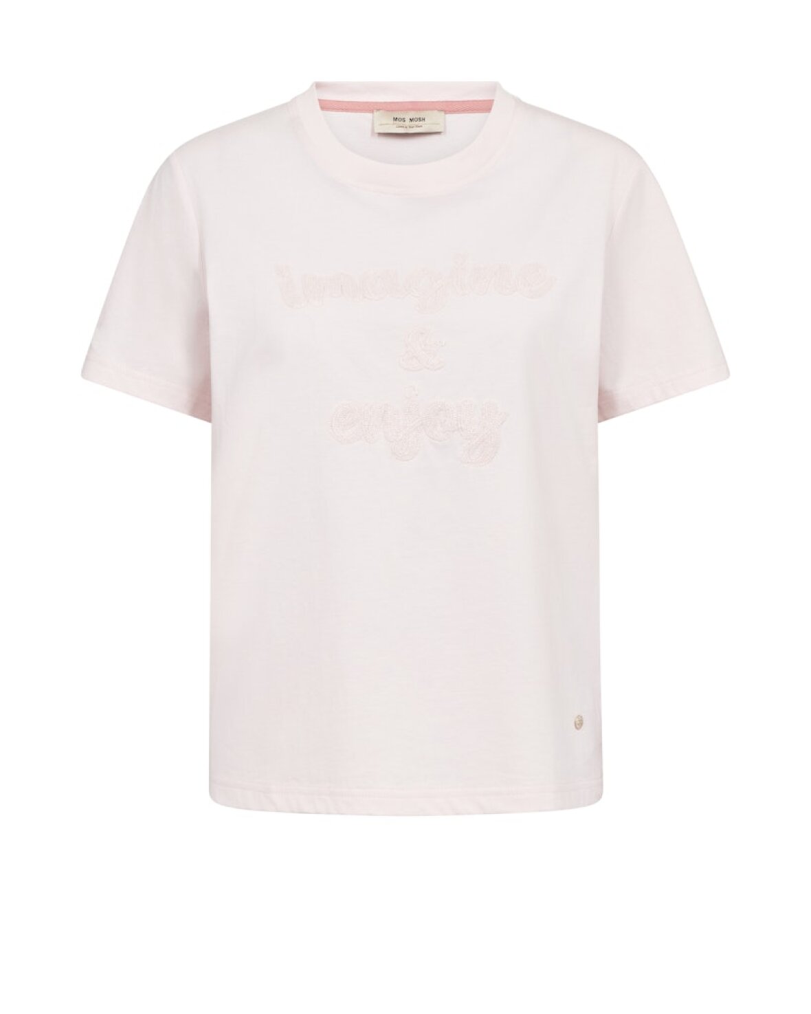 MMMAKRI O-SS TEE - MOS MOSH En blød T-shirt i økologisk bomuld med klassisk pasform og rund hals. Det diskrete broderi foran tilfører et raffineret touch til det ellers enkle design. Perfekt at style med skræddersyede bukser eller afslappet denim for et ubesværet chikt hverdagslook.