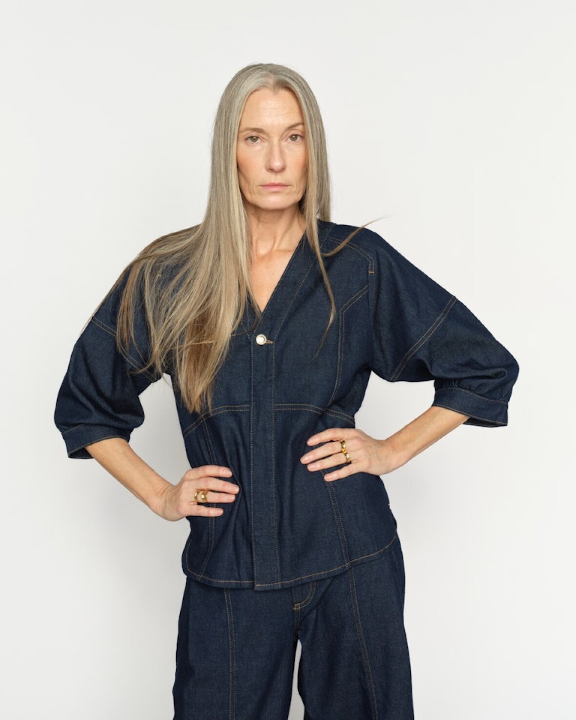 MMBARI CRISPY SHIRT - MOS MOSH Denne denim-inspirerede skjorte bringer et moderne twist til en tidløs silhuet. Den er designet i en regular pasform med flatterende V-udskæring, knaplukning og diskrete paneldetaljer, der fremhæver formen. De let cropped ærmer tilfører et afslappet, men elegant touch – perfekt til både jeans og skræddersyede bukser.