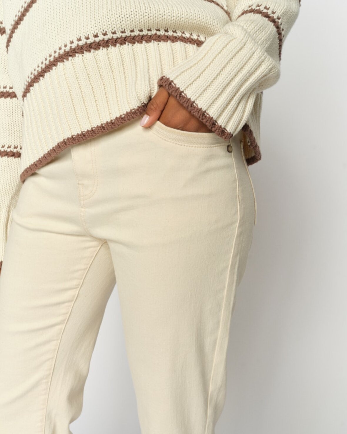 MMCECILIA PERLA JAENS - MOS MOSH En flatterende flare-jeans designet til at forlænge silhuetten. Fremstillet i blødt, strækbart denim, der giver en behagelig pasform og bevæger sig med kroppen. De har høj talje, klassisk femlomme-design samt skjult knap- og lynlåslukning. Det let udsvingede bukseben tilfører et strejf af retrocharme – perfekt med en indstukket bluse eller en statement T-shirt.