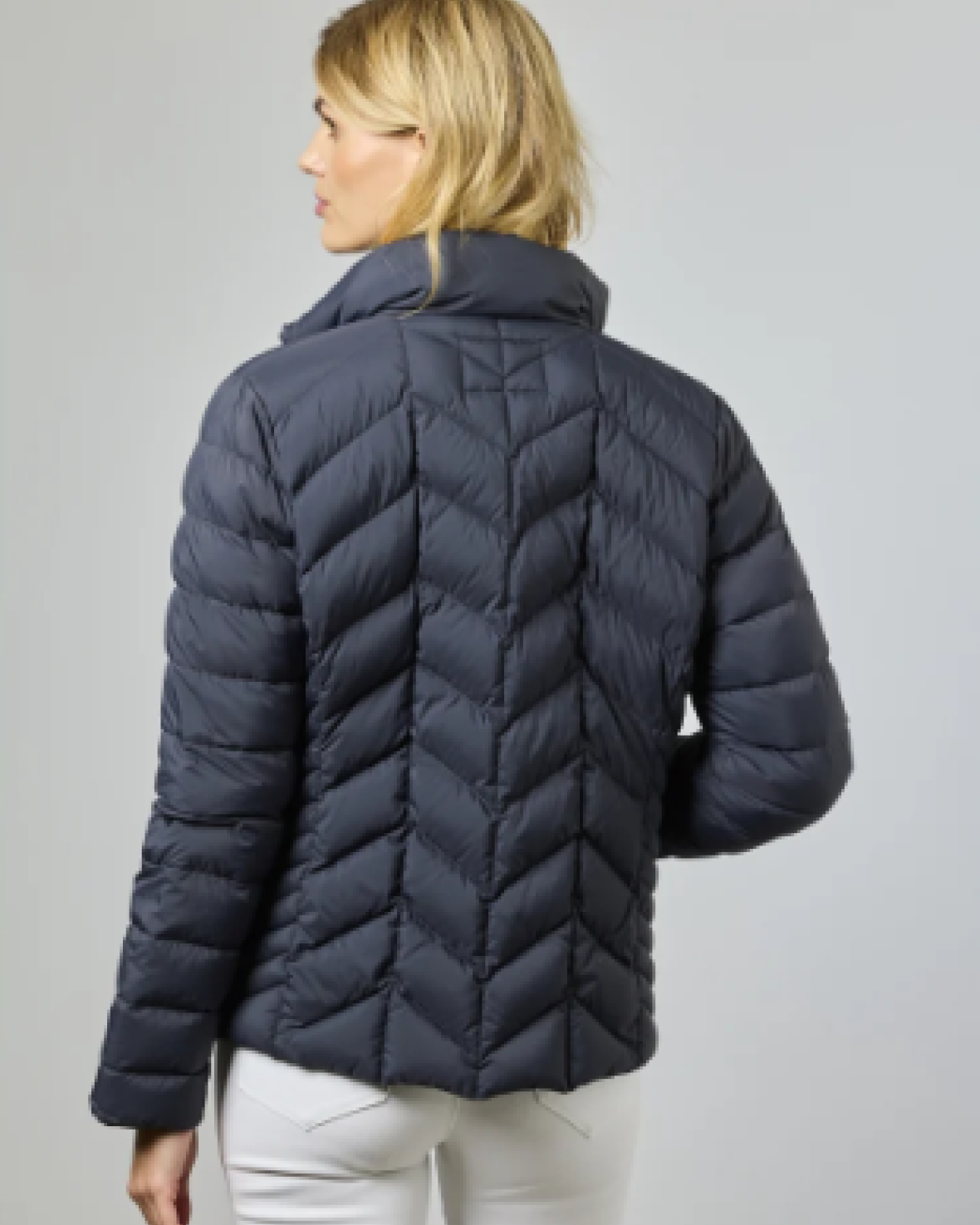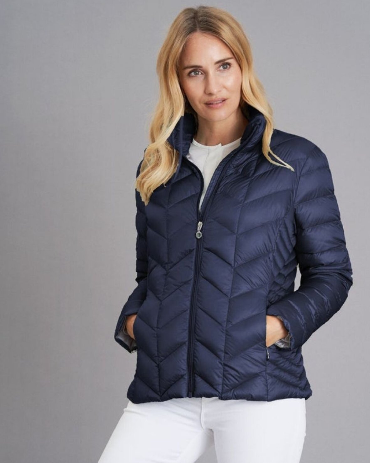 DAISY JAKKE - JUNGE Let og varm, Daisy jakken er en to-lags dunjakke designet til optimal komfort i overgangsperioder. Med et elegant diagonalt quiltet mønster, giver denne jakke et moderne look med effektiv isolering. De skjulte lynlåslommer bevarer en ren og strømlinet silhuet. Indvendigt er der en praktisk inderlomme til dine småting. Den kontrasterende foer tilfører et subtilt farvespil og stil. Fyldt med 90% dun og 10% fjer, giver Daisy fremragende varme uden at være tung. For at genoprette jakkens oprindelige fylde efter vask, anbefales det at tørretumble jakken grundigt med tørrebolde et par timer.