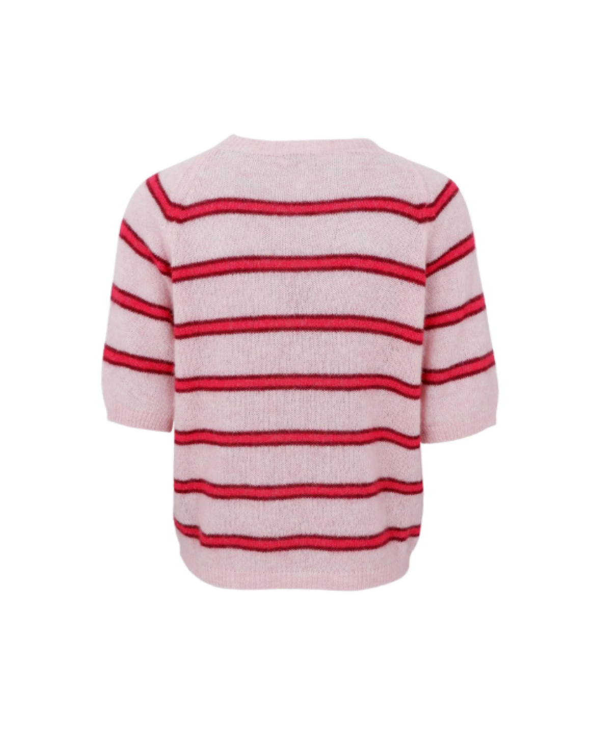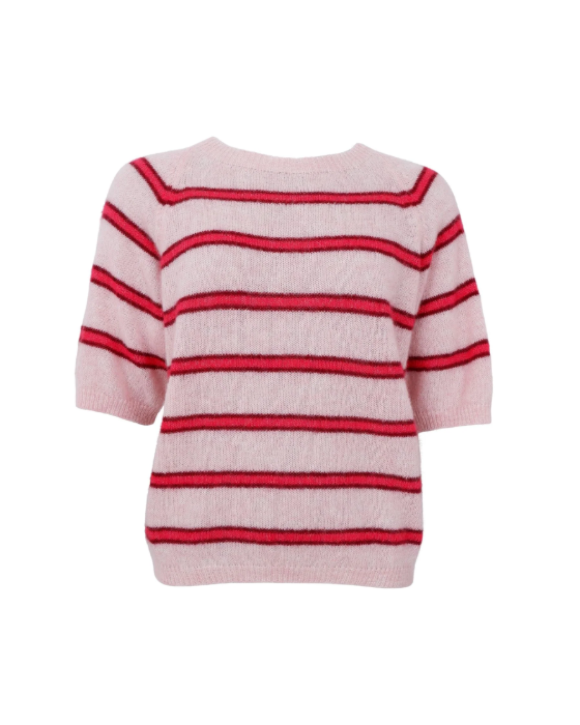 BCDELLSS JUMPER - BLACK COLOUR Denne kortærmede strik er designet med raglanærmer og et lige, afslappet snit. Strikken er udført i glatstrik og har et enkelt udtryk med fine, horisontale striber, der giver et klassisk, men moderne look. En anvendelig strik, der egner sig godt til både hverdag og arbejde og nemt kan styles med både bukser og nederdele.