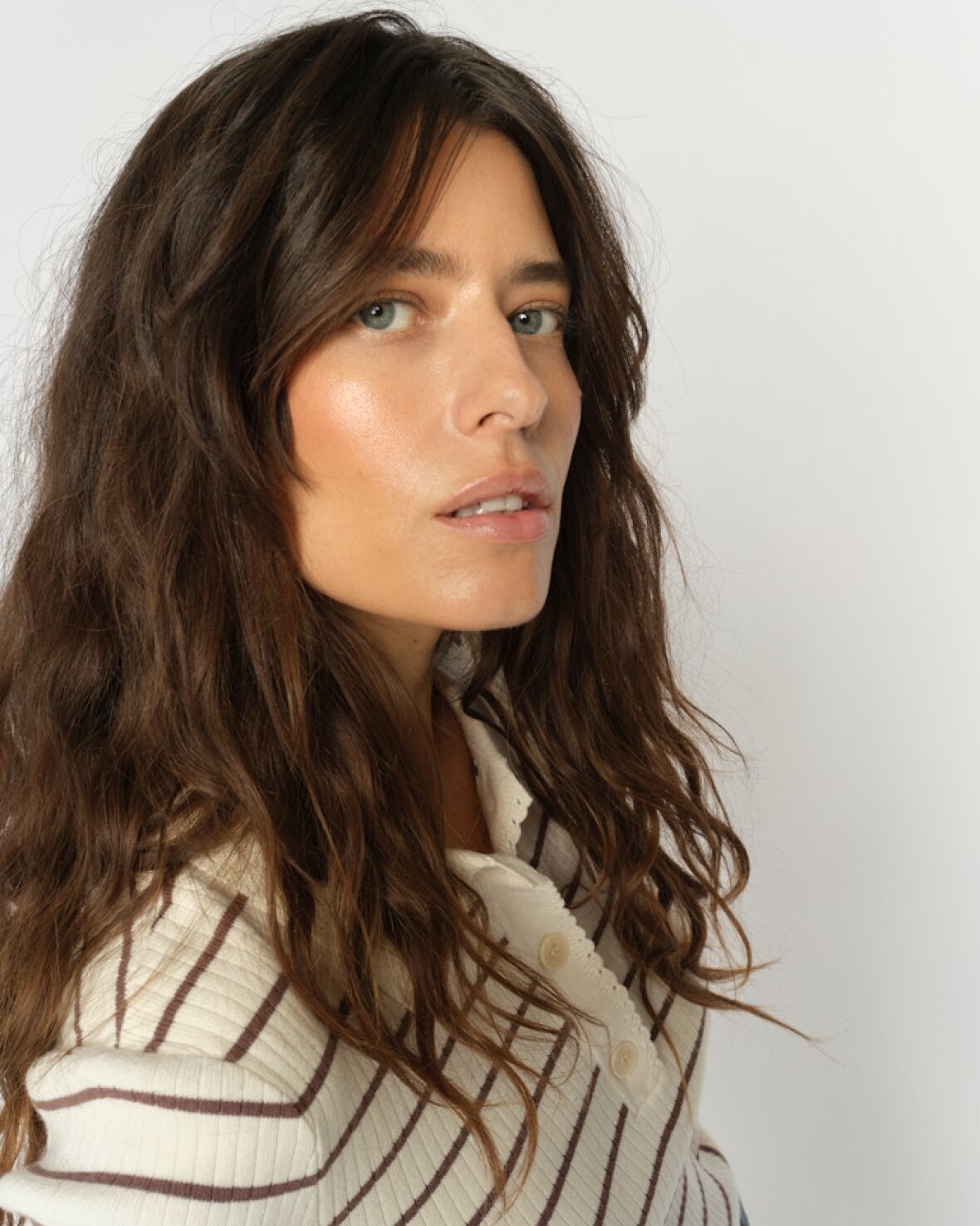 MMCALIZSTRIPE SS KNIT - MOS MOSH En raffineret fortolkning af den klassiske polo. Denne bløde, stribede strik er designet i en regular pasform med korte ærmer, klassisk krave og knaplukning. Den fine strikkestruktur og lette glans giver et tidløst og feminint udtryk. Style den med jeans eller skræddersyede bukser for et ubesværet elegant hverdagslook.