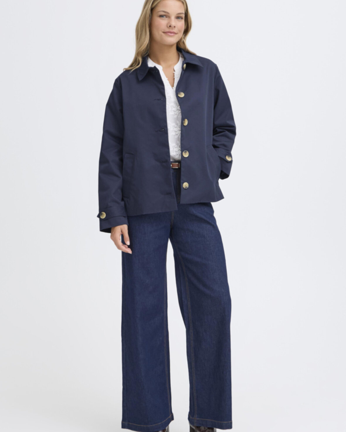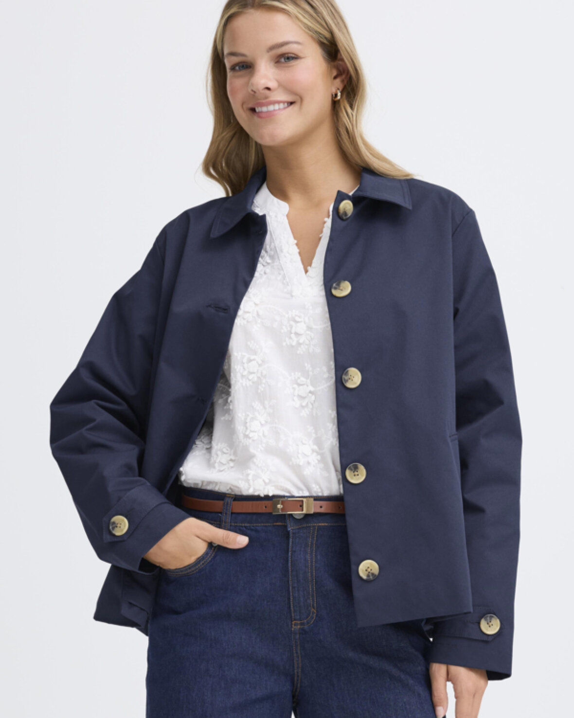 FRTRINA JAKKE 3 - FRANSA Lækker jakke med lige silhuet, klassisk krave og synlige knapper. Har forlommer med kant, lange ærmer og et minimalistisk, stilrent udtryk.