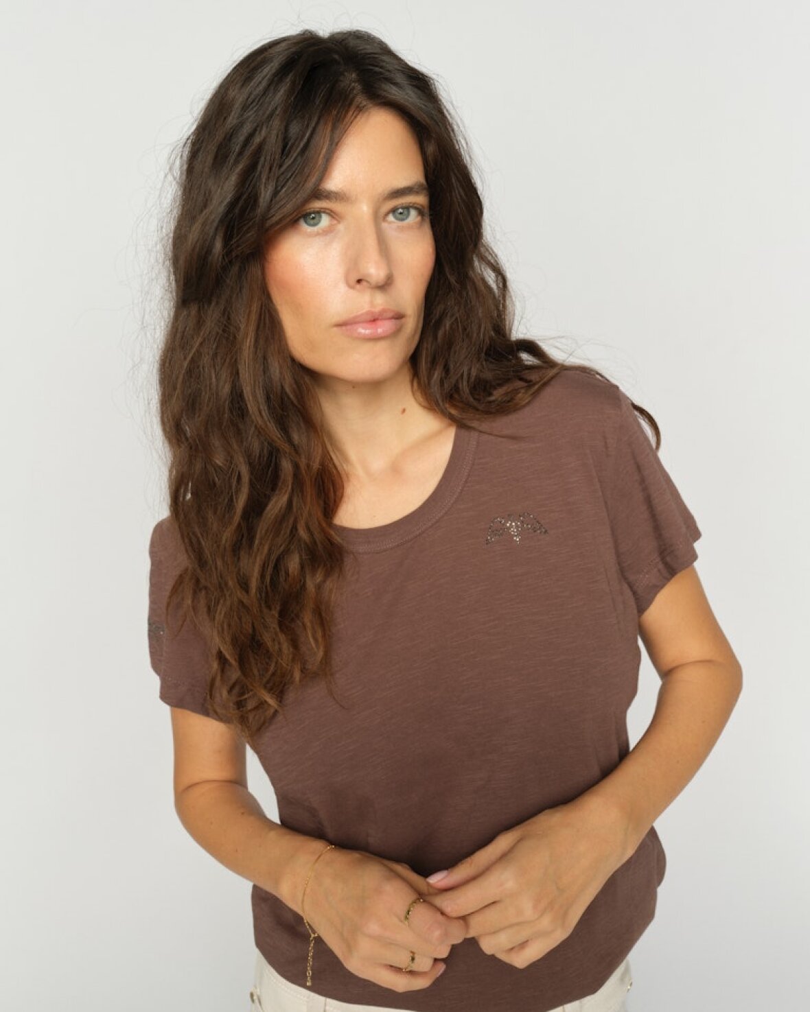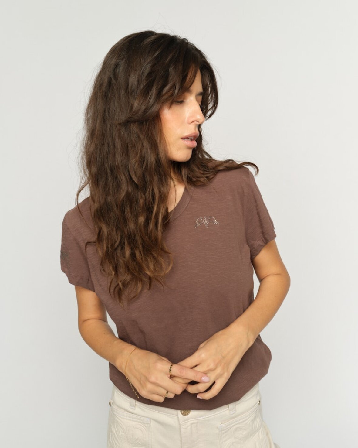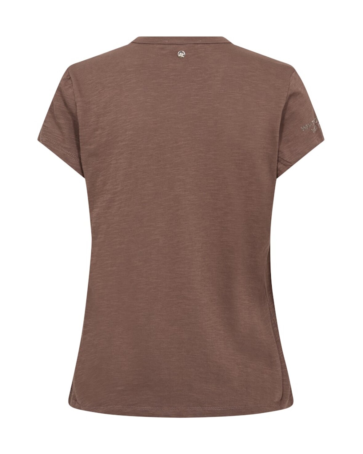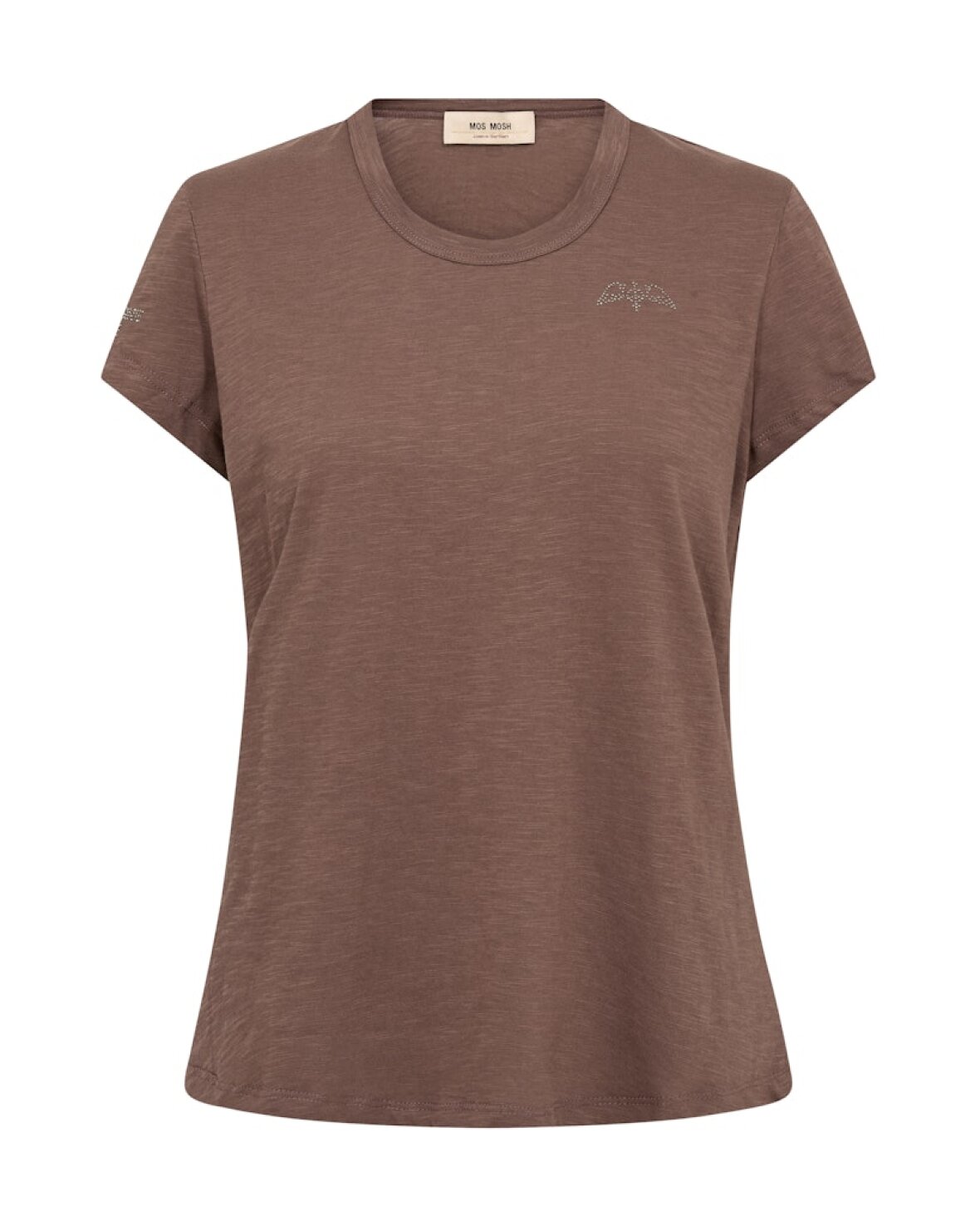 MMSAFINA O-SS TEE - MOS MOSH Et garderobemust-have. Denne bløde T-shirt i bomuld har klassisk rund hals, korte ærmer og en regular pasform. Den er designet med et diskret tone-i-tone logo på brystet for et rent og tidløst udtryk. Perfekt under en blazer eller stylet med jeans for et ubesværet hverdagslook.