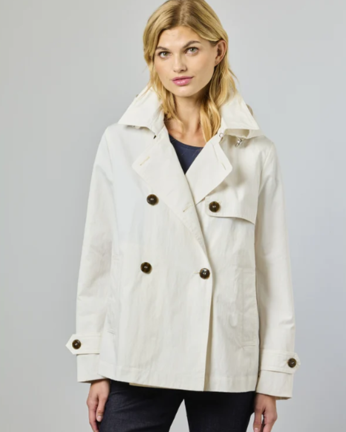 NICOLETTE JAKKE - JUNGE Hvor tidløs skrædderkunst møder moderne lethed – Nicolette Jakken er en kort, vid bomuldsfrakke designet til ubesværet sofistikering. Med en dobbeltradet front og blød struktur tilbyder den en raffineret silhuet, der problemfrit går fra afslappet til smart. Nicolette er fremstillet af en slidstærk bomuld-nylonblanding og har klassiske trench-inspirerede detaljer såsom et hakket revers, knapper i hornlook og en manchetrem med knaplukning. En slids bagpå tilføjer bevægelse og komfort, mens rene syningsdetaljer fremhæver det minimalistiske design. Den aftagelige hætte tilføjer alsidighed – brug den for ekstra dækning, eller fjern den for et mere poleret look. Nicolette er delvist foret for let lag-på-lag-tøj og er ideel til overgangsvejr og urban påklædning.