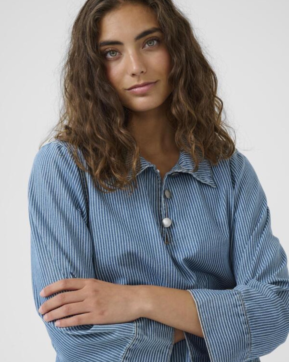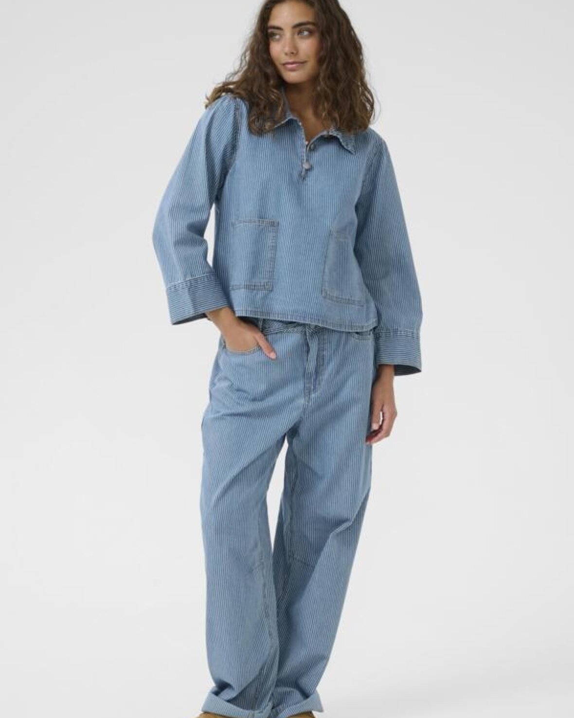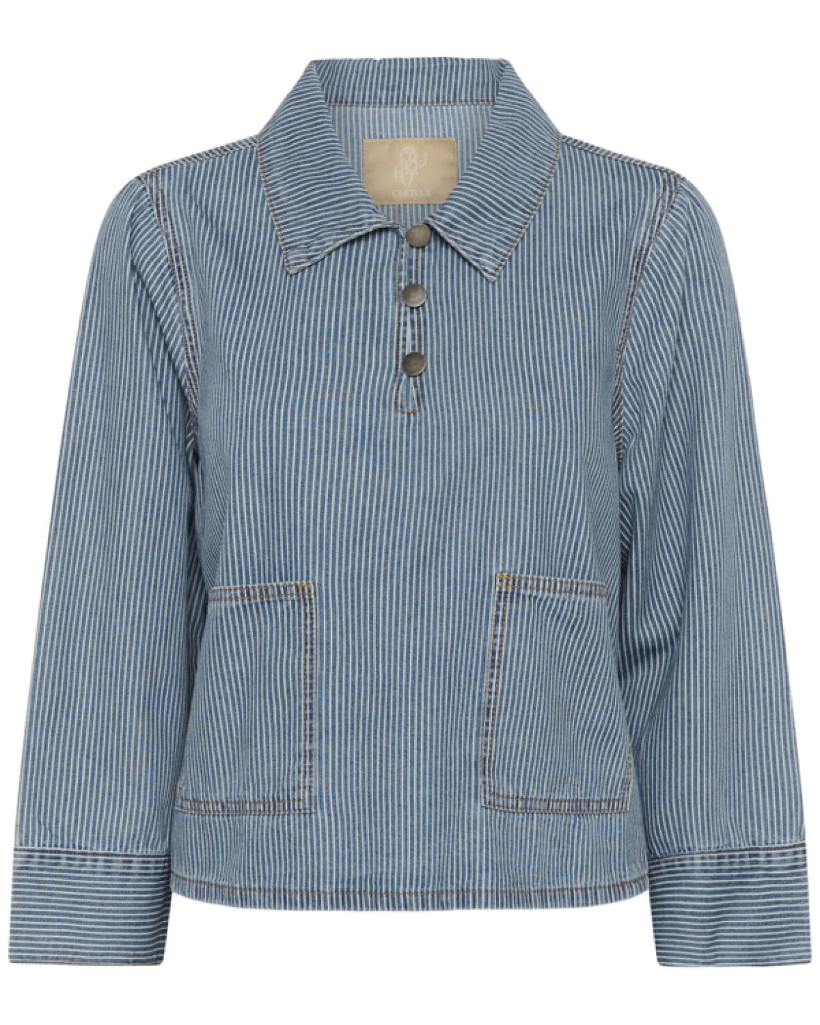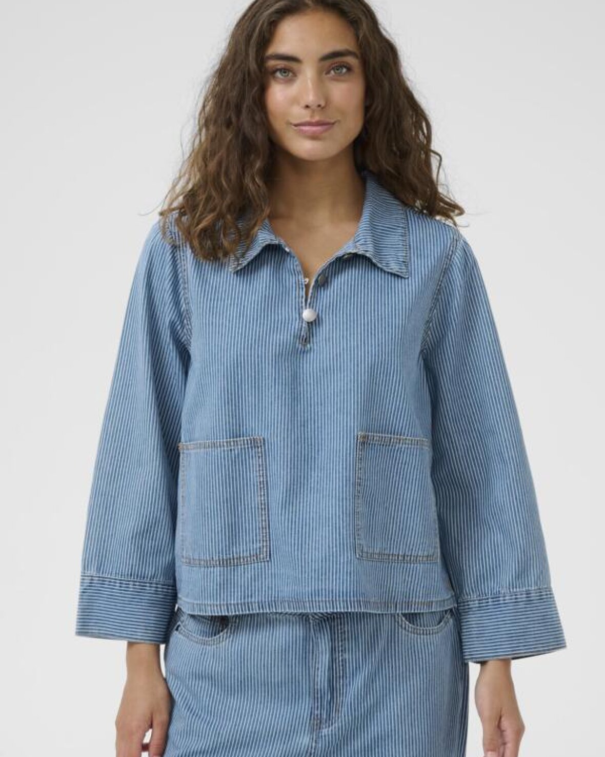 CUAYNA SHIRTJACKET - CULTURE Denne afslappede, stribede top har boxy pasform, lange ærmer, klassisk krave, knaplukning ved hals og praktiske forlommer. Perfekt til lag-på-lag og alsidig styling.