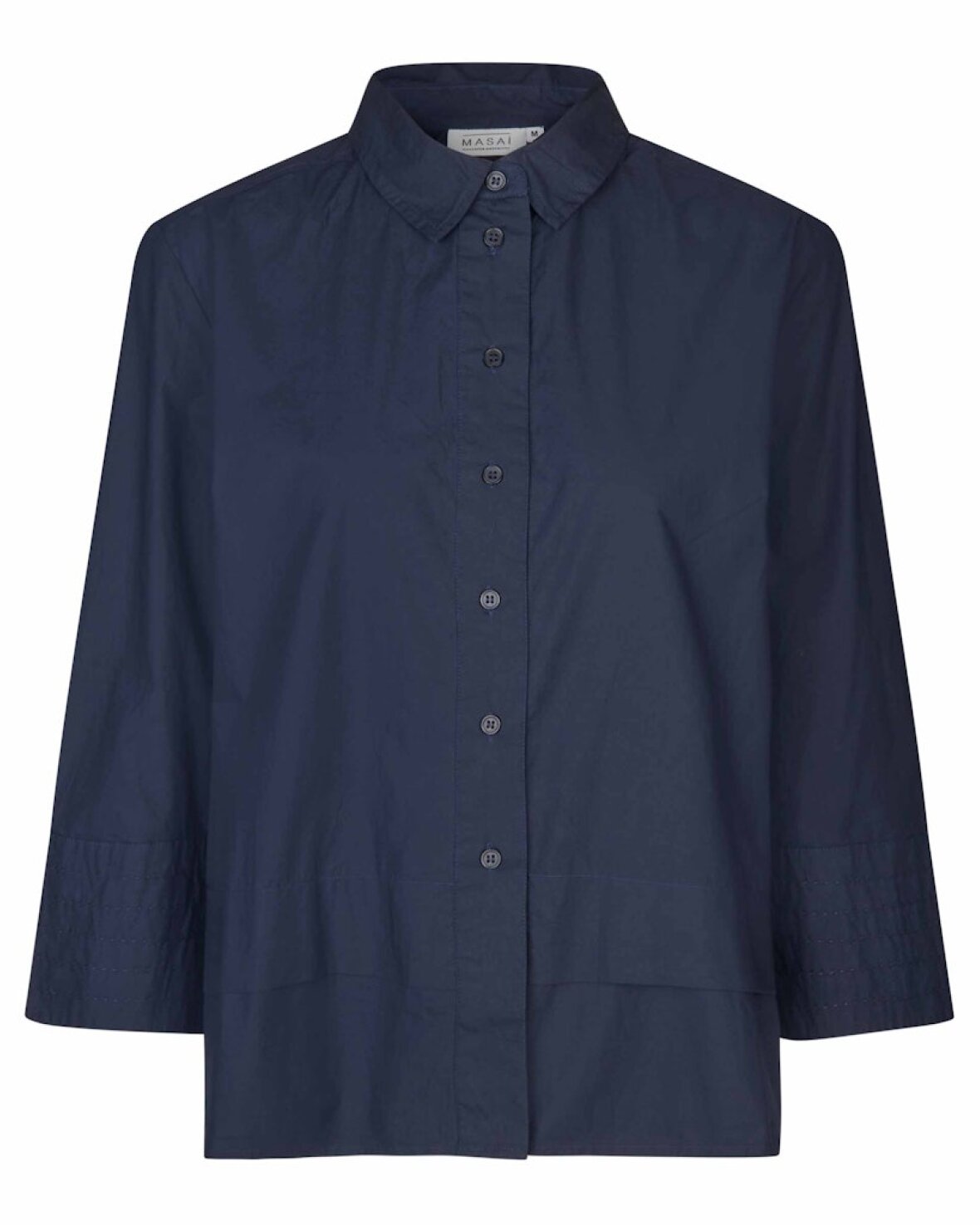 Malanela BCI skjorte - MASAI En ensfarvet skjorte er uundværlig i garderoben, og denne version vil være et frisk pust til ethvert look. Den har et klassisk, lige snit, der giver generøs komfort og får skjorten til at falde løst og flot ned over kroppen. Den knitrende bløde bomuld er skøn at have på, og skjorten byder desuden på trekvartlange ærmer med dekorative syninger på manchetterne. Brug den til din yndlingsbuks, en stilfuld nederdel eller under en vest alt efter dit humør.