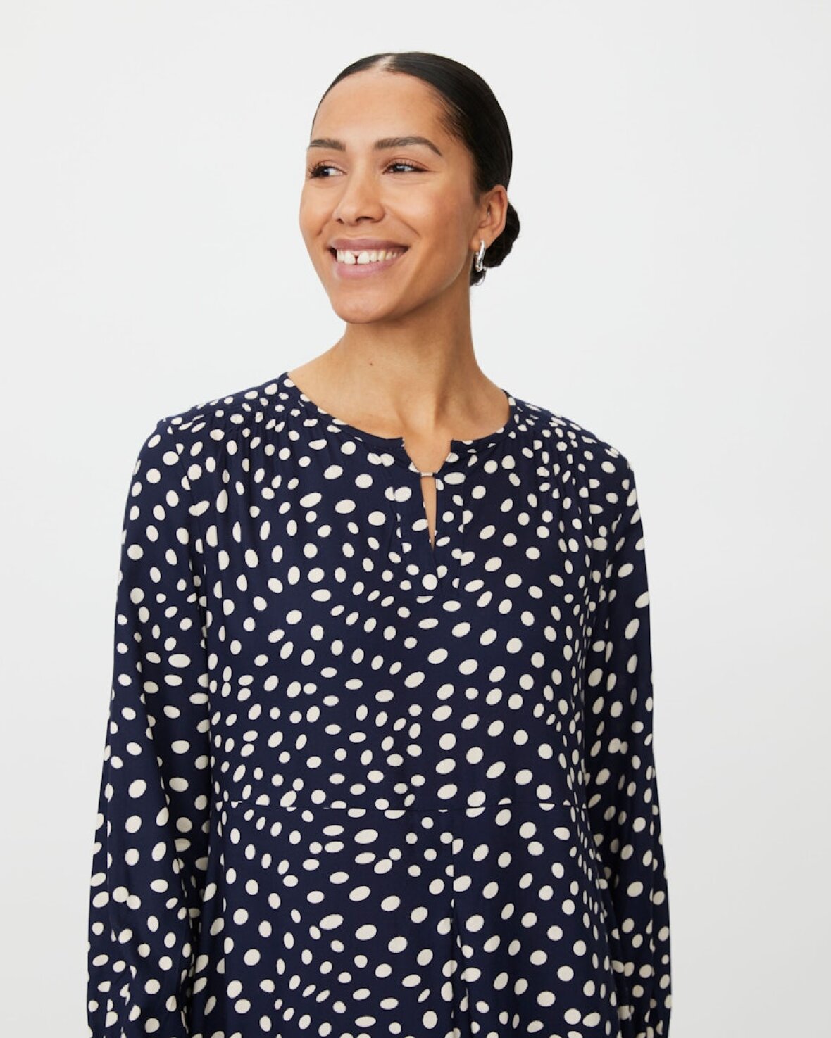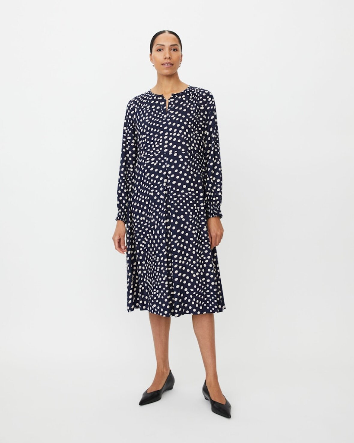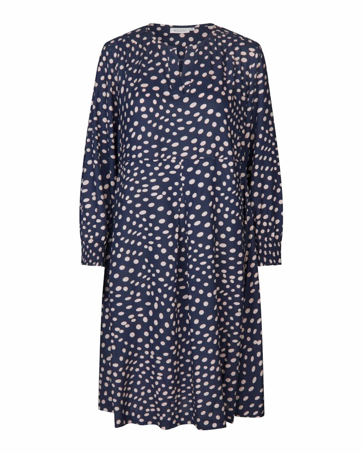 MANEXORA KJOLE - MASAI Let og feminin kjole med et levende, grafisk mønster, der giver et elegant og afslappet udtryk. Modellen har en flatterende pasform med let vidde i skørtet, som falder blødt og bevæger sig smukt med kroppen. Den enkle halsudskæring med lille slids tilfører et fint, feminint touch, mens de lange ærmer afsluttes med manchetter, der giver struktur og komfort. En alsidig kjole, der fungerer lige så godt til hverdagen som til mere formelle anledninger – nem at style op eller ned alt efter behov.Kvalitet: 100 % Viskose
