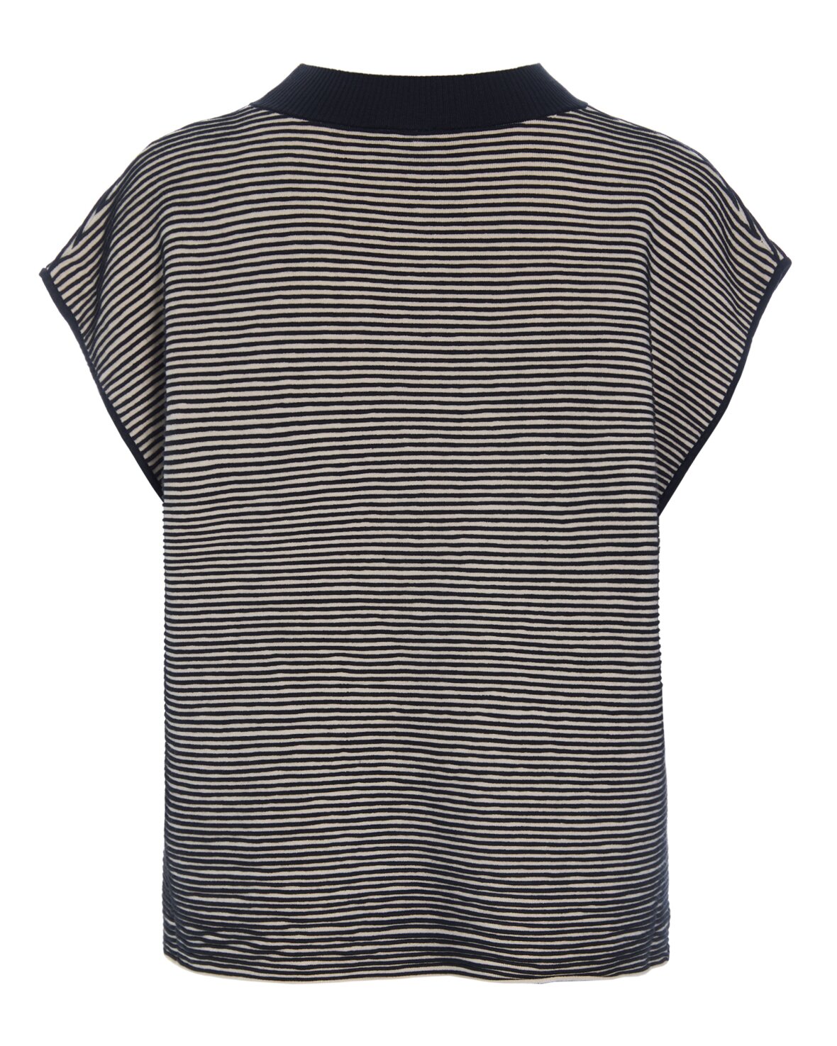 BLUSE 15171 - BITTE KAI RAND Bluse strikket i fine vandrette bieser. Det ærmeløse snit gør blusen oplagt at bruge som vest over en kropsnær bluse eller en skjorte. Blusen er også flot blot tilsat bare arme.