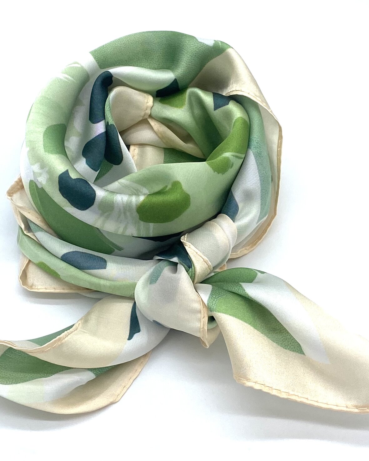 TØRKKLÆDE B28-0077 - Just d`lux er et smukt mønstret tørklæde i en lækker blød polyester. Kan bruges rundt om halsen eller ved hanken på din yndlingstaske.