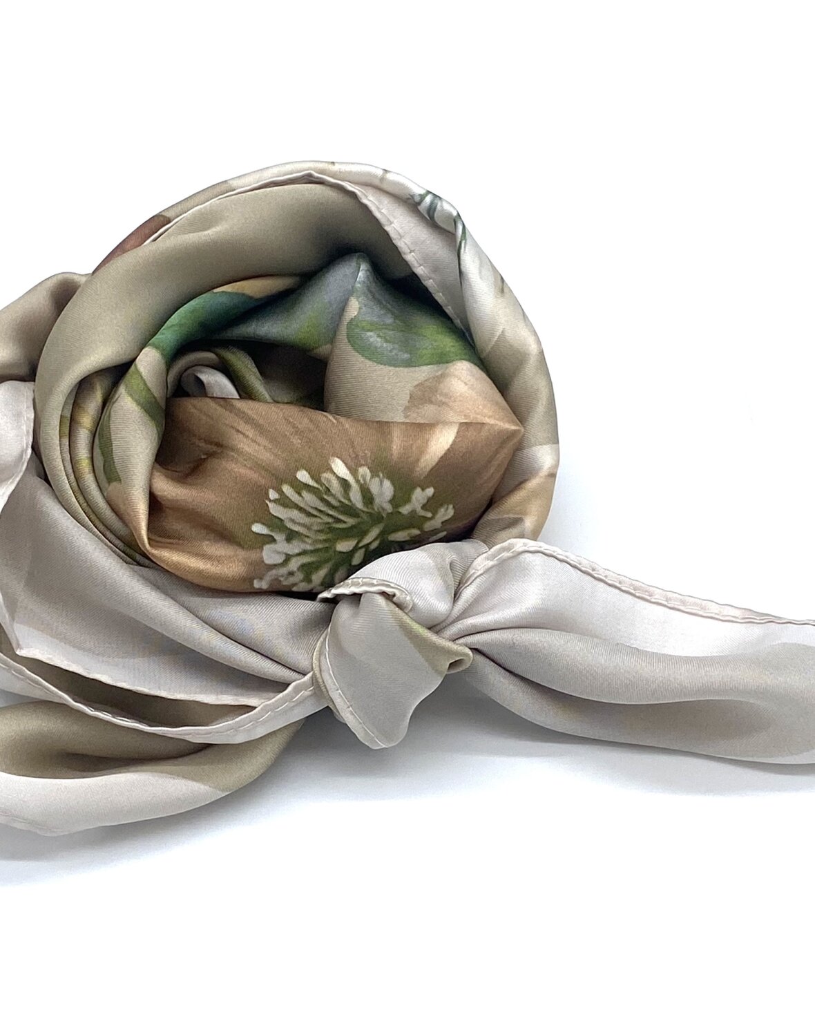 TØRKLÆDE B28-0084 - Just d`lux er et smukt mønstret tørklæde i en lækker blød polyester. Kan bruges rundt om halsen eller ved hanken på din yndlingstaske.