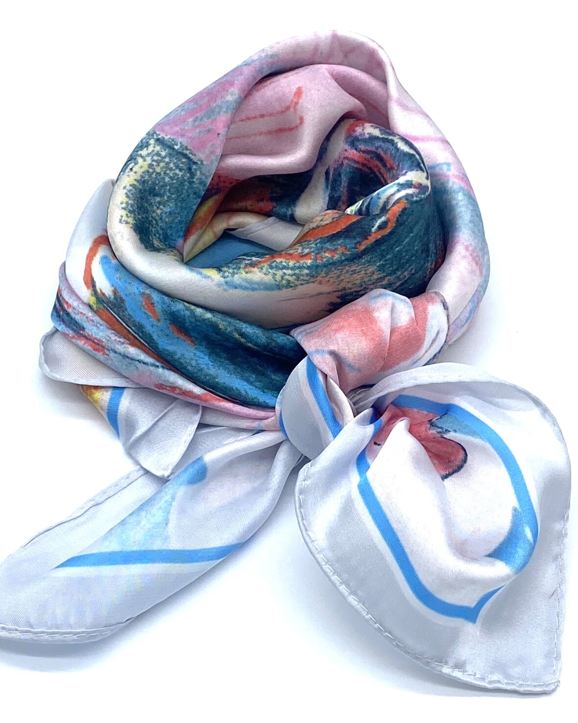 TØRKLÆDE B28-0055 - Just d`lux er et smukt mønstret tørklæde i en lækker blød polyester. Kan bruges rundt om halsen eller ved hanken på din yndlingstaske.