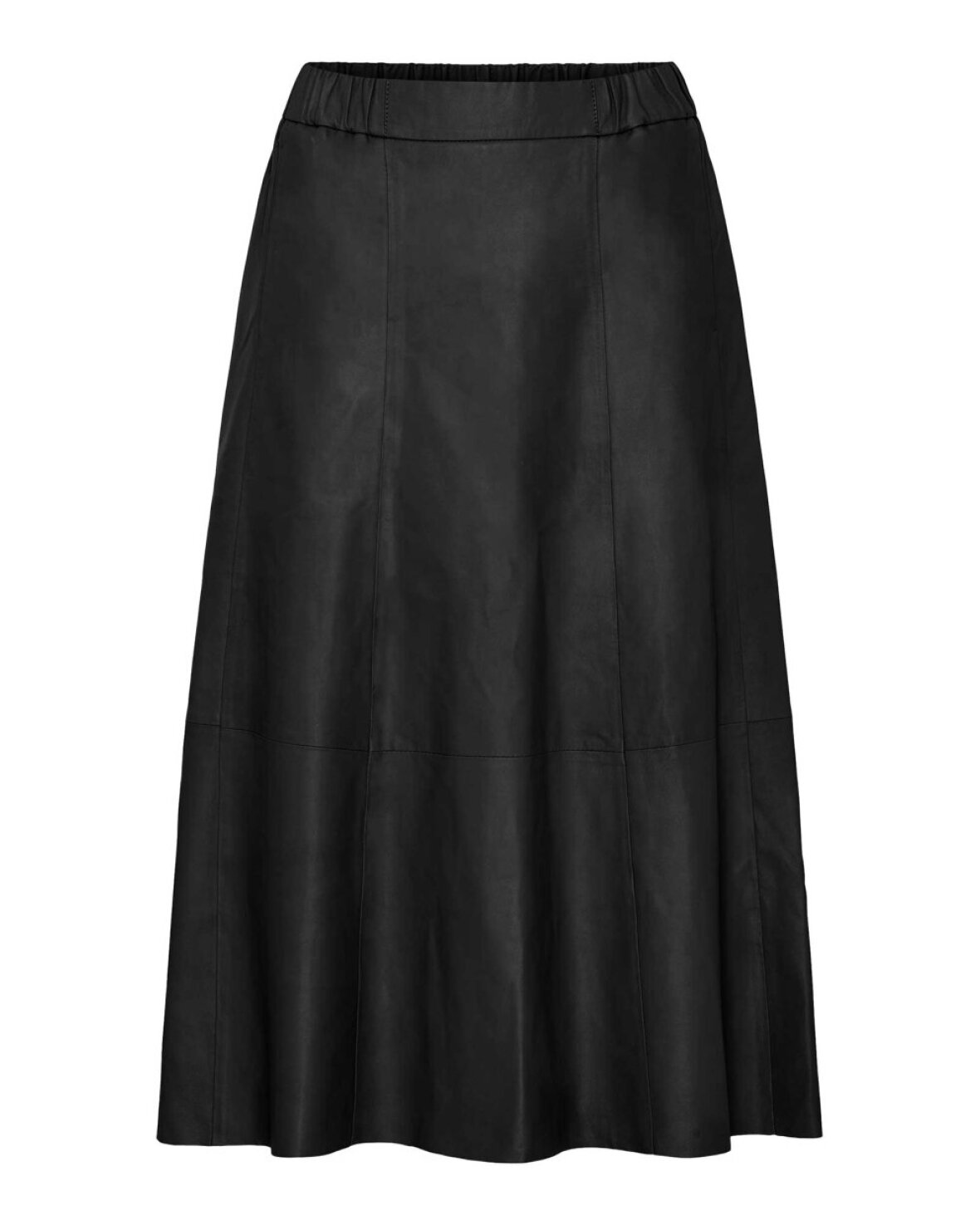 SOPHIE LEATHER SKIRT - BTF-CPH er en smart midi A-shape nederdel i blødt læder med beklædt elastik i taljen. Nederdelen har diskrete sidelommer og dekorative sømme, og den løstsiddende pasform sikrer komfort og bevægelsesfrihed. Strækbar elastik i taljen giver optimal fleksibilitet, og elastikken kan justeres efter behov. Bemærk: Materialer af naturlig oprindelse kan variere i farven. Vi anbefaler at imprægnere læderet med plejespray inden brug for at forlænge levetiden.