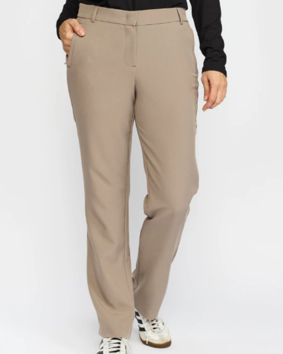 OLJA BUKS - 2-BIZ er en klassisk suit bukser med et behageligt fit, hvor der er knap og lynlås lukning foran samt elastik bagpå, som får bukserne til at sidde helt perfekt. De er perfekte til hverdagen, men kan også nemt styles op til fest.