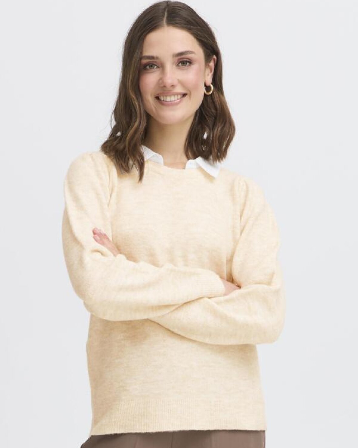 FRKATIEJO PULLOVER 2 - FRANSA Strikketrøje med skjortekrave, klassisk lige pasform og blødt udtryk. Skarpt kravedesign giver et stilet touch til det enkle look.