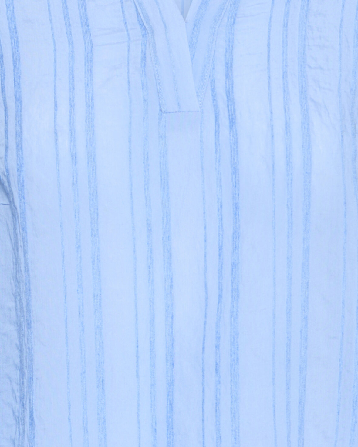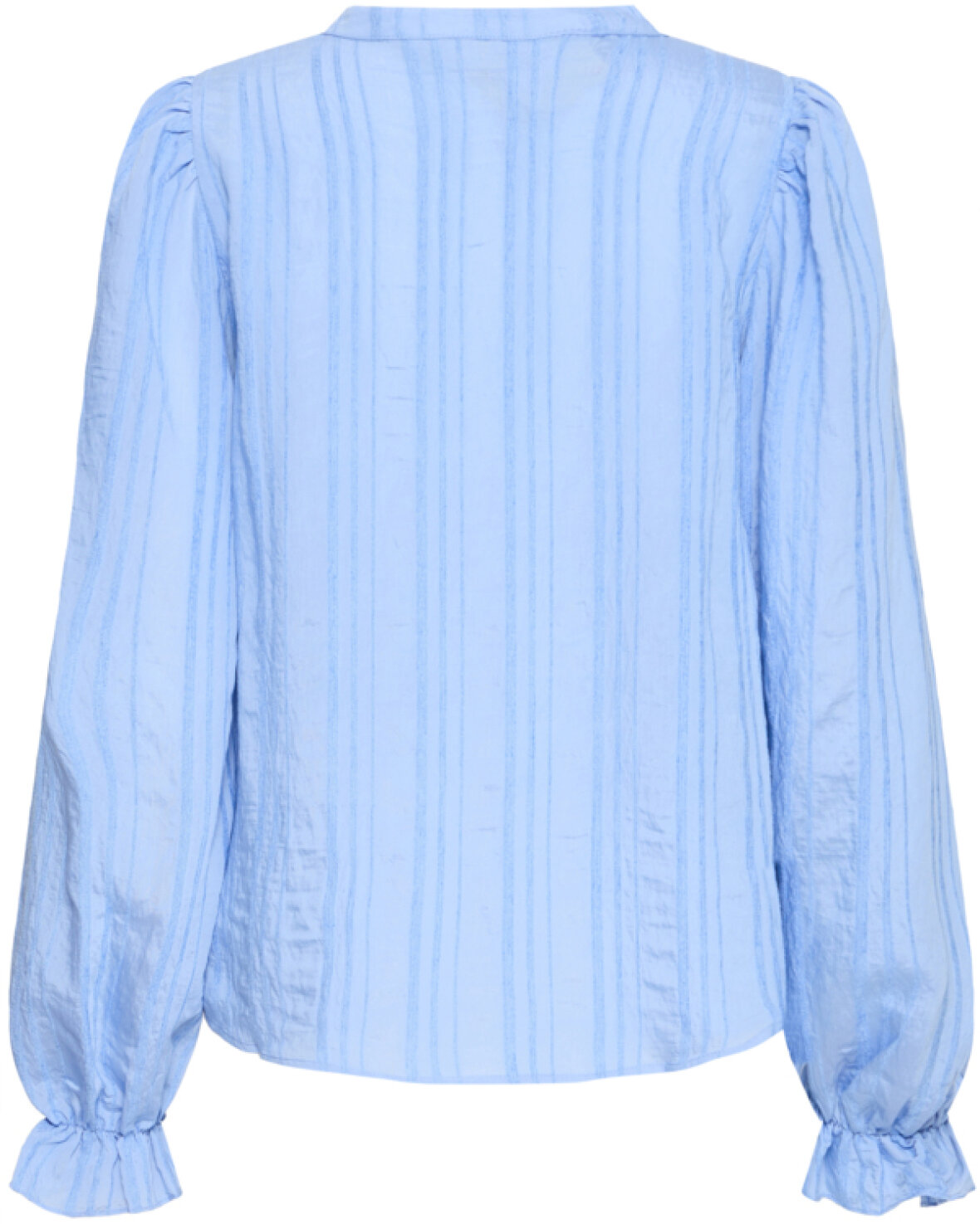 FRVALMA BLUSE 1 - FRANSA Blusen har lange ærmer, subtilt krøllet tekstur med lodrette striber, stående krave med V-hals og løstsiddende pasform samt elastiske flæseærmer.Kvalitet: 85% Viskose, 15% Polyamid