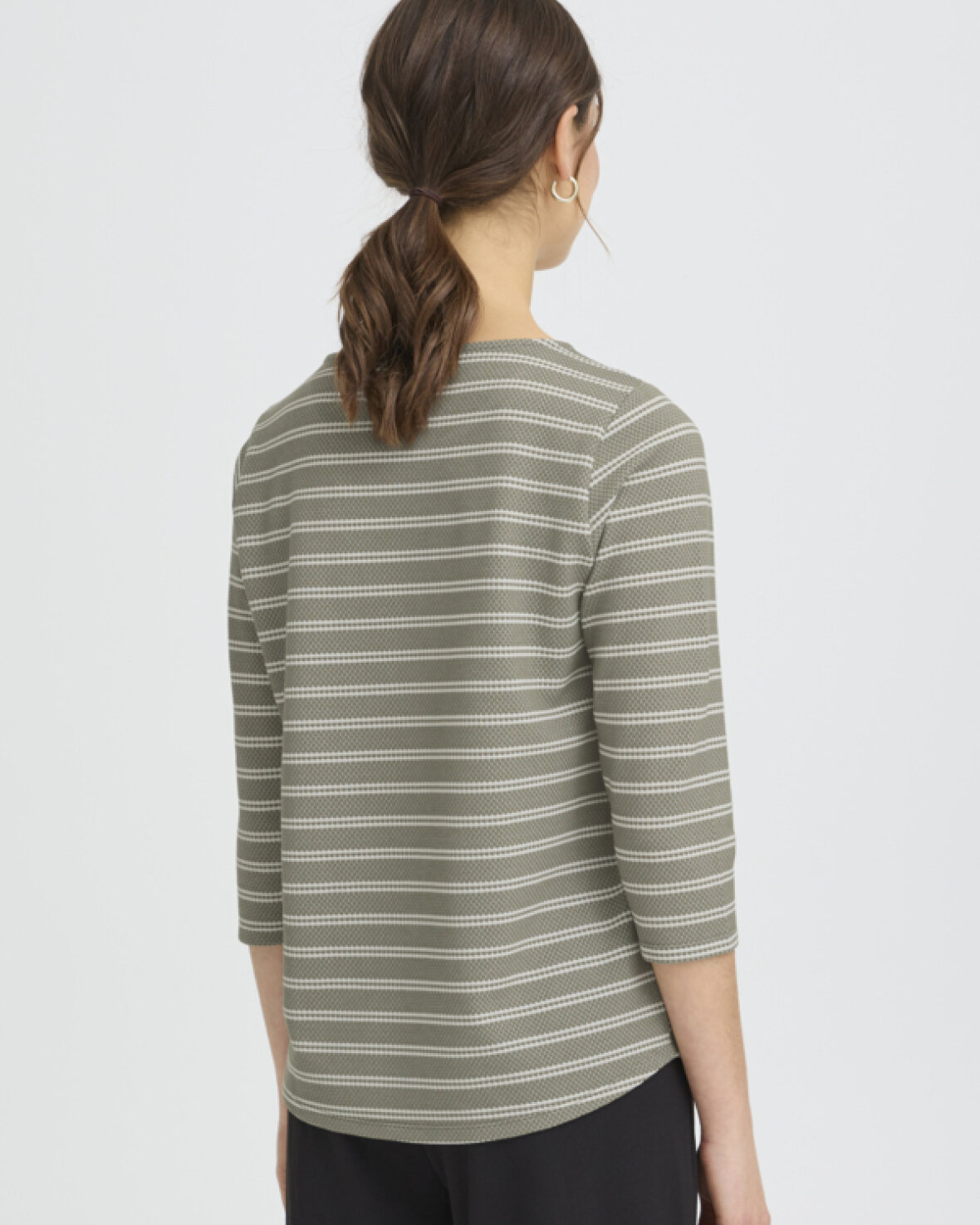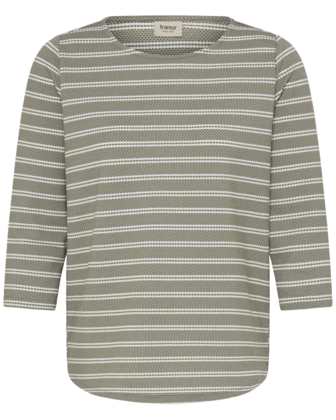 FRJOSIE TEE 4 - FRANSA Stribet top med 3/4-ærmer, bådhalsudskæring og lige pasform. Rundet kant forneden og blødt, struktureret udtryk til afslappet stil.