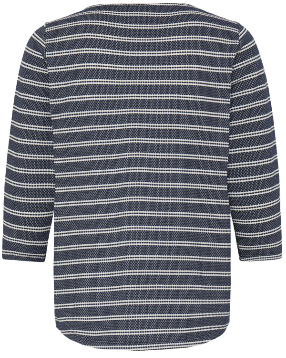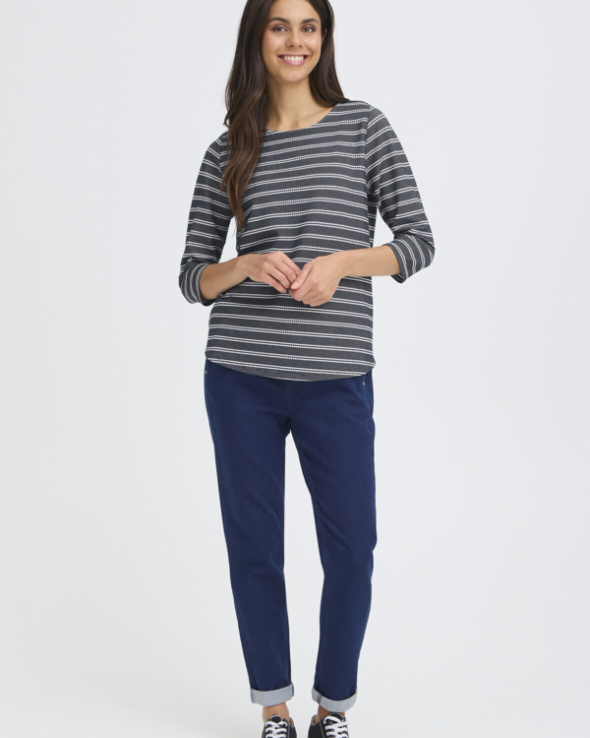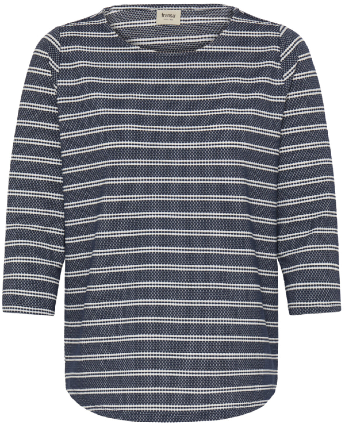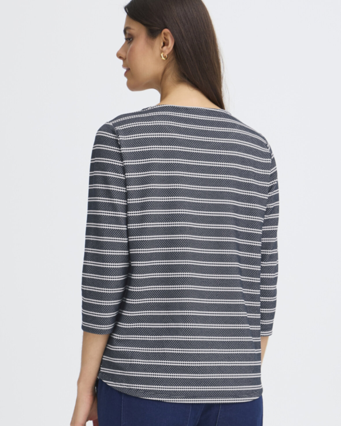 FRJOSIE TEE 4 - FRANSA Stribet top med 3/4-ærmer, bådhalsudskæring og lige pasform. Rundet kant forneden og blødt, struktureret udtryk til afslappet stil.Kvalitet: 96% Polyester, 4% Elastan