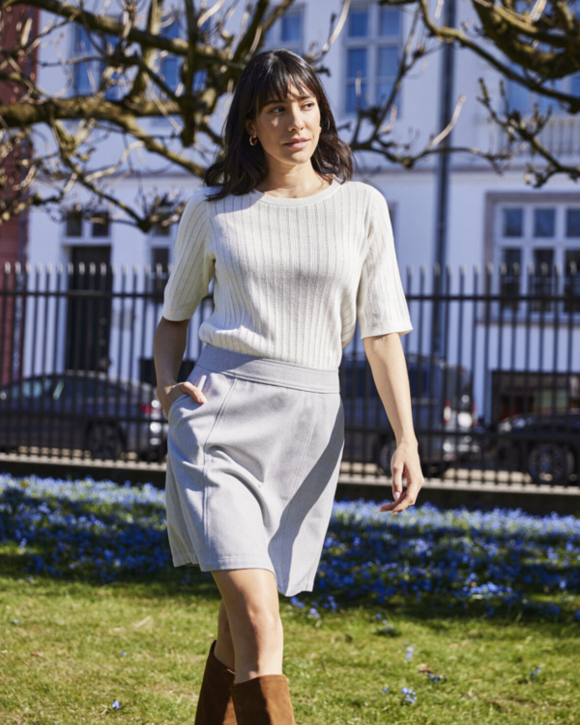 FRDAMIA TEE 1 - FRANSA Struktureret bluse med lige silhuet, rundet halsudskæring og trekvartærmer. Den fine ribtekstur giver en enkel, cool finish og et moderne udtryk.Kvalitet: 95% Polyester, 5% Elastan
