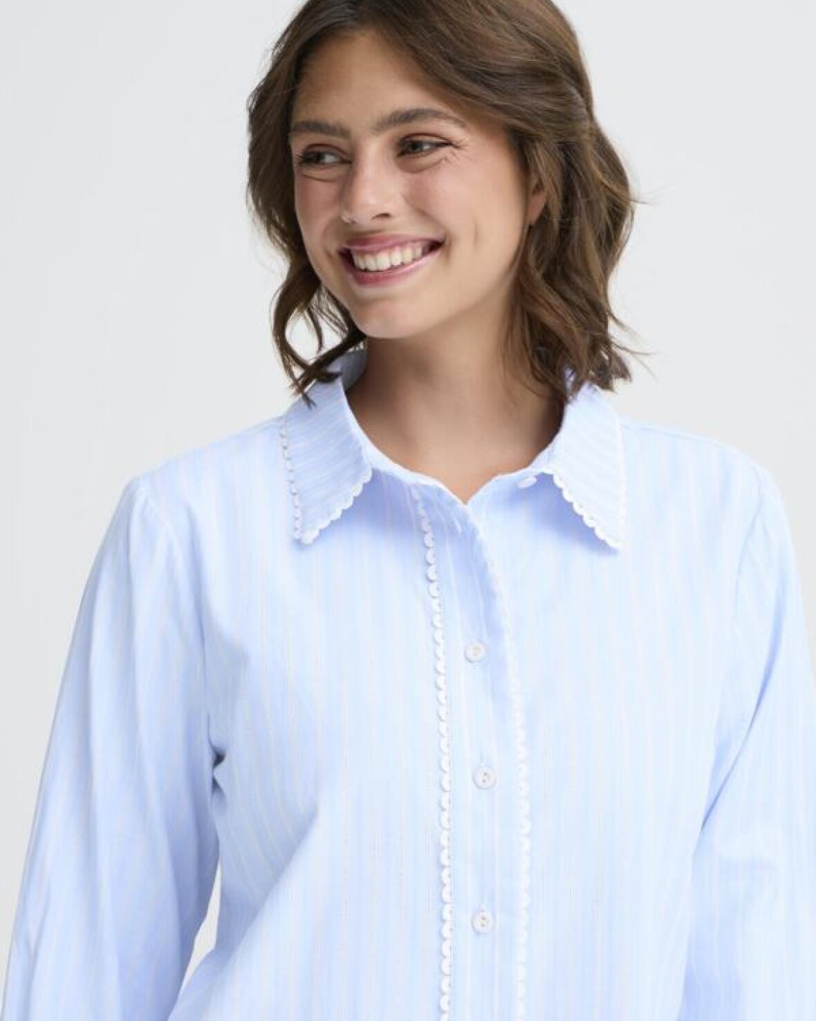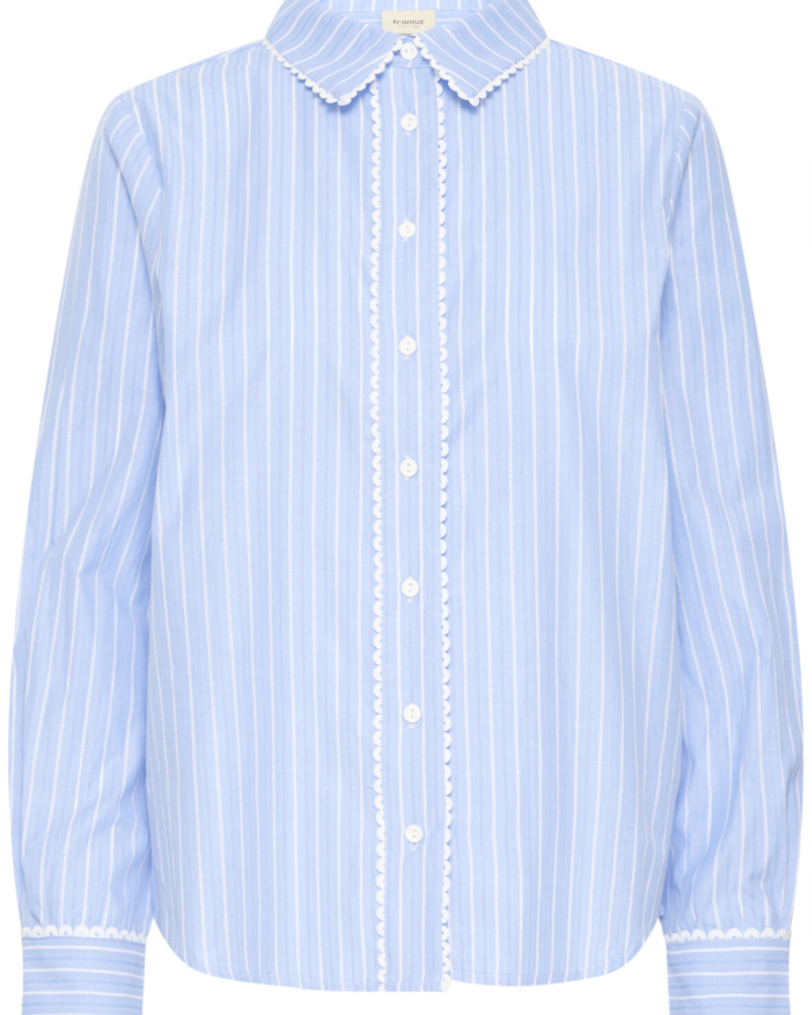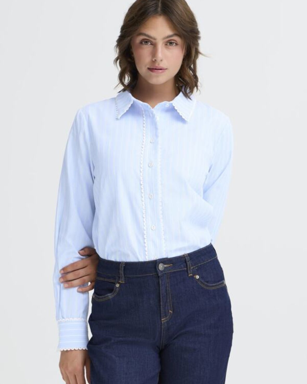 FRLERA SKJORTE 1 - FRANSA Skjorte med klassisk pasform, knaplukning, spids krave, diskrete lodrette striber og fin bølget kant langs stolpe, krave og manchetter.Kvalitet: 70% Bomuld, 30% Polyester