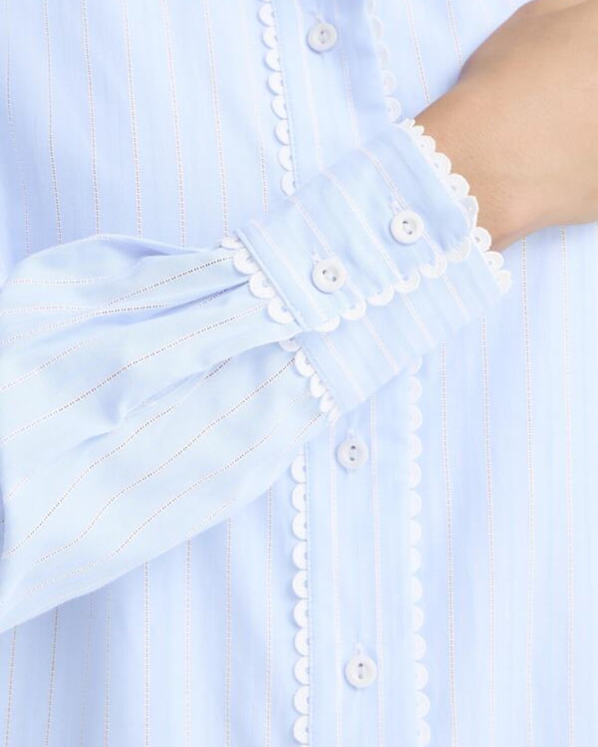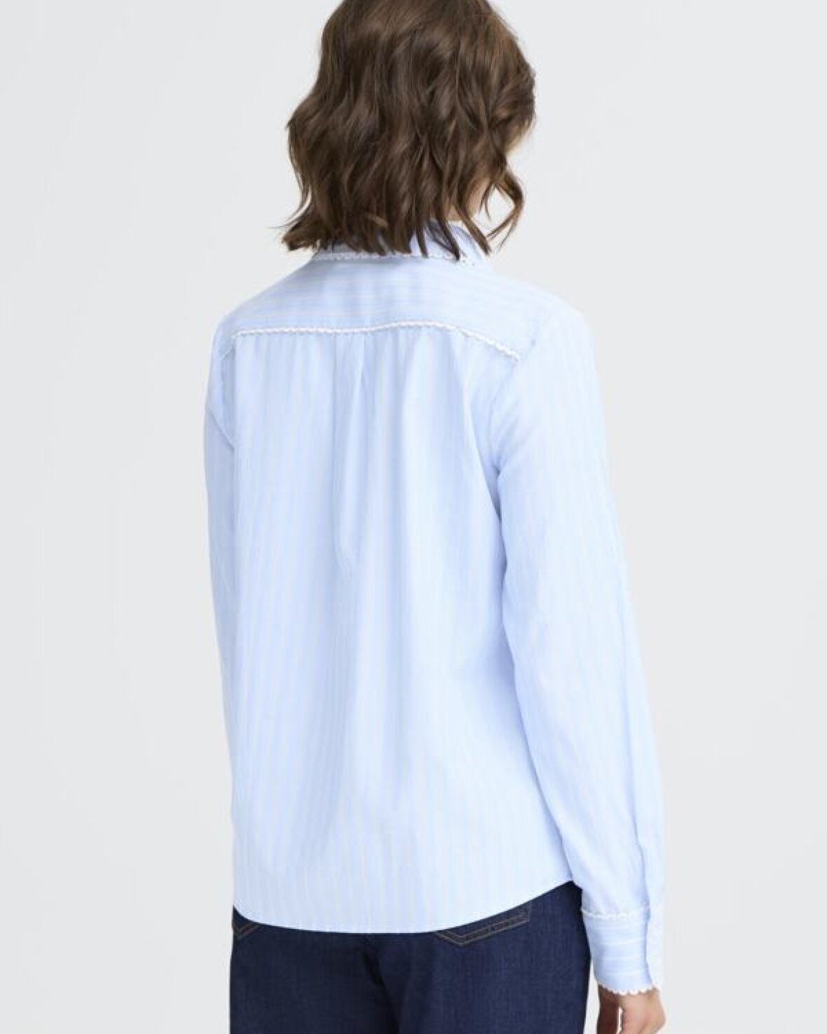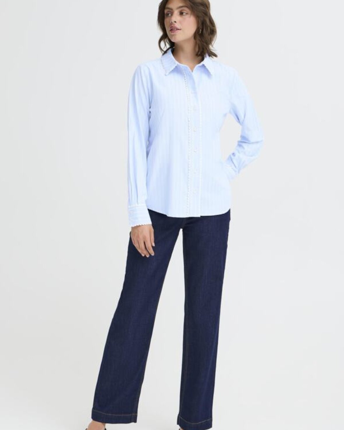 FRLERA SKJORTE 1 - FRANSA Skjorte med klassisk pasform, knaplukning, spids krave, diskrete lodrette striber og fin bølget kant langs stolpe, krave og manchetter.Kvalitet: 70% Bomuld, 30% Polyester