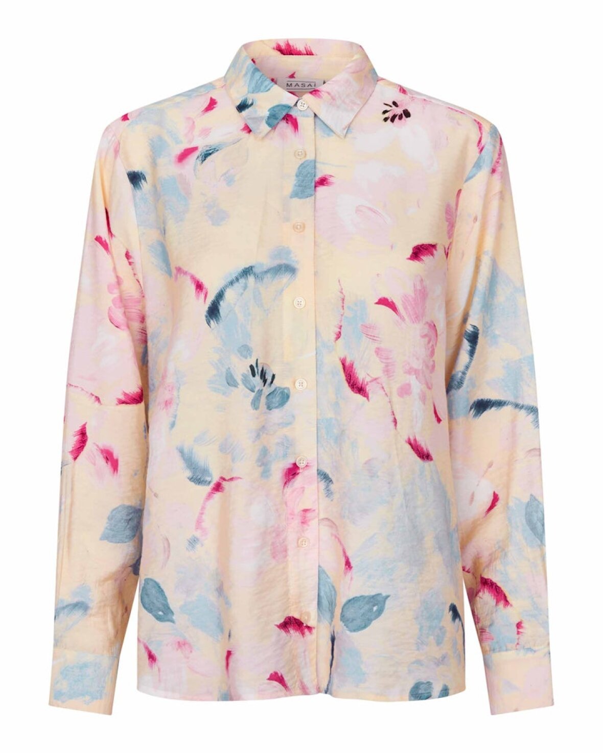Malmma SKJORTE-MASAI Skjorte med klassisk snit og et let, kunstnerisk mønster. Modellen har krave og gennemgående knaplukning, som giver et rent og struktureret udtryk. Det bløde print tilfører et levende og feminint præg til det enkle design.Kvalitet:85 % Viskose, 15 % Polyamid