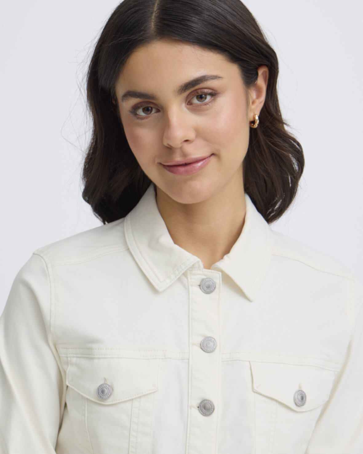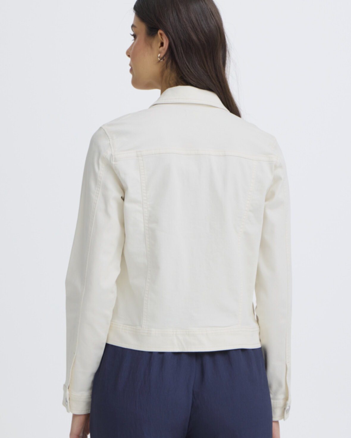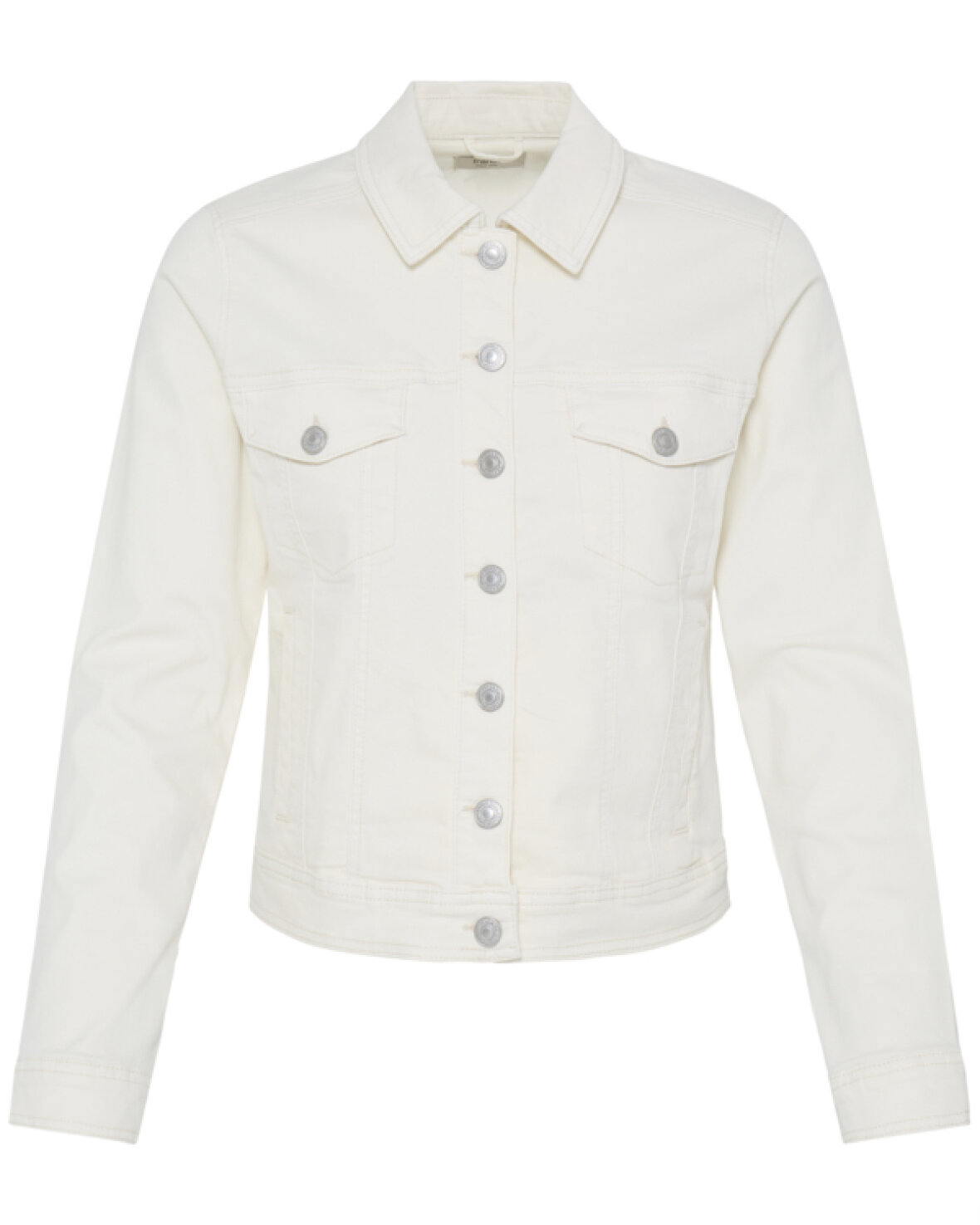 FRTWILL 1 JAKKE-FRANSA Denimjakken har en lige, struktureret pasform med klassisk krave og gennemgående knaplukning. Brystlommer med flap og lange ærmer fuldender looket.