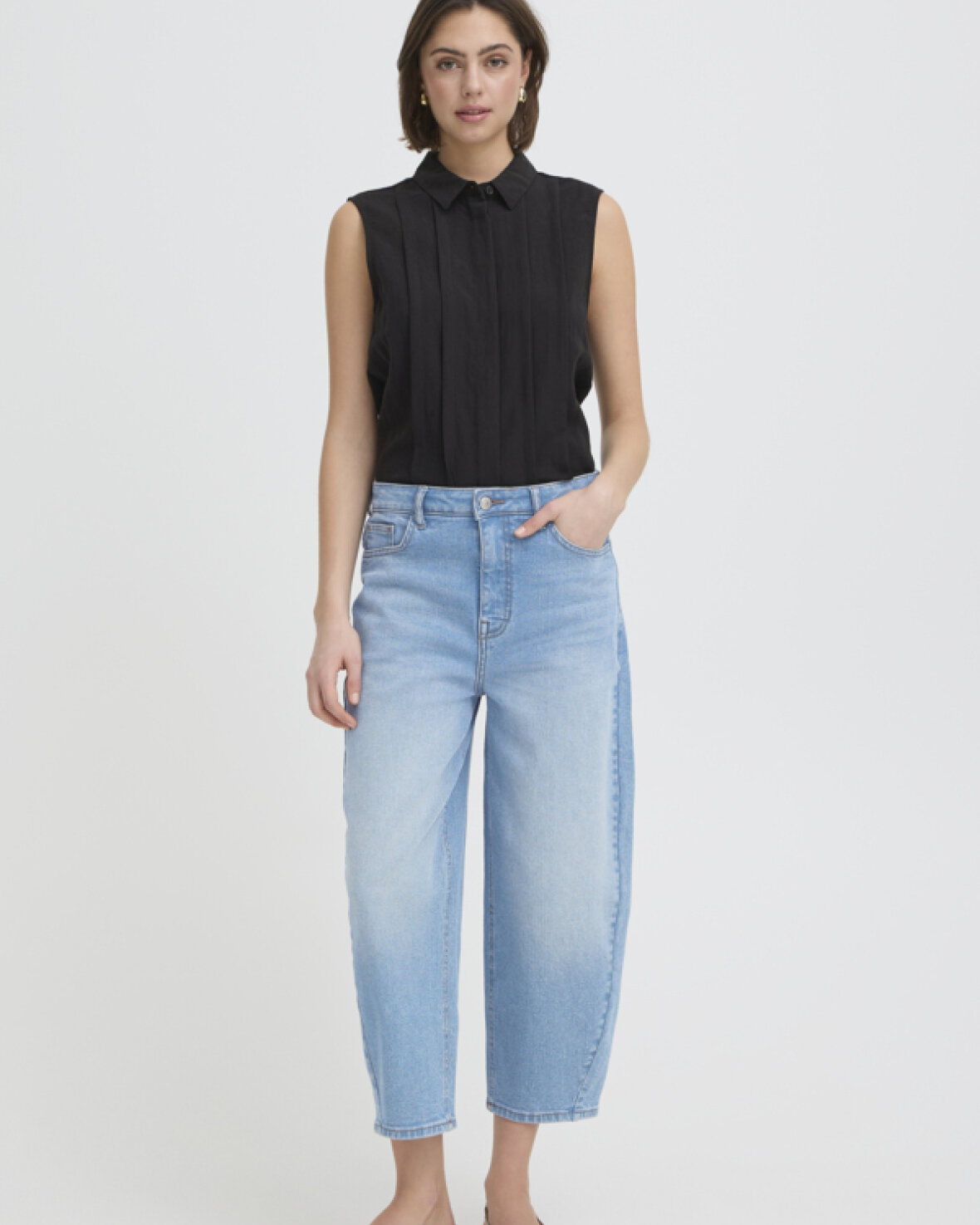 FRLORELEI JAENS 3 - FRANSA Wide leg jeans giver et moderne udtryk med høj talje, løs pasform og cropped længde. Klassisk fem-lomme-design og lynlås lukning er inkluderet.Kvalitet: 98% Bomuld, 2% Elastan