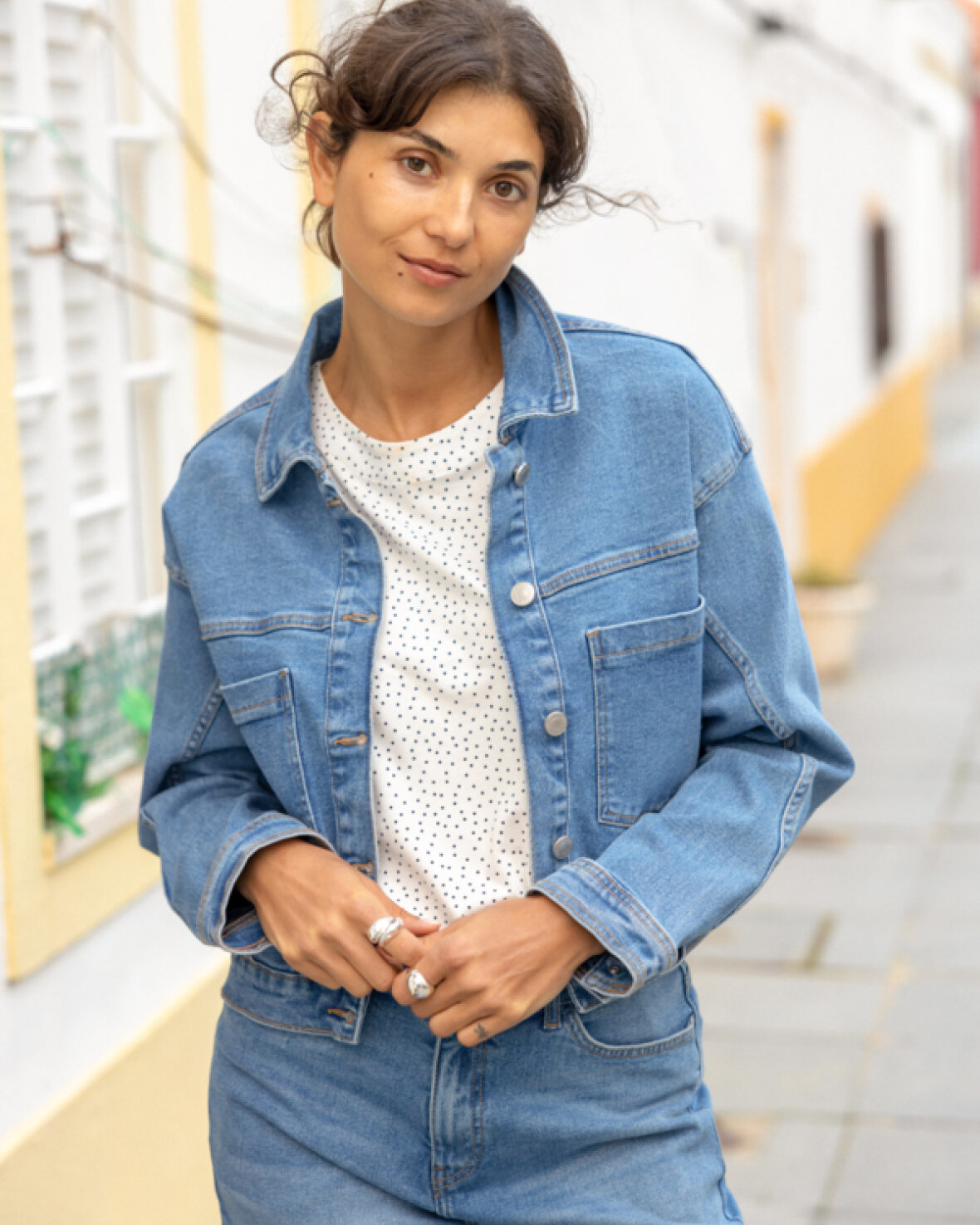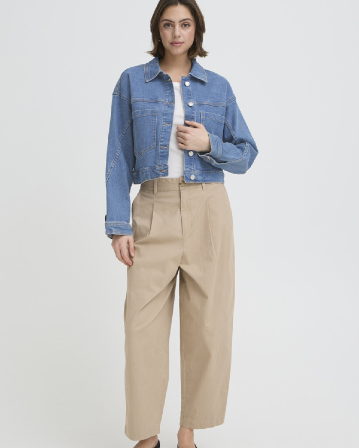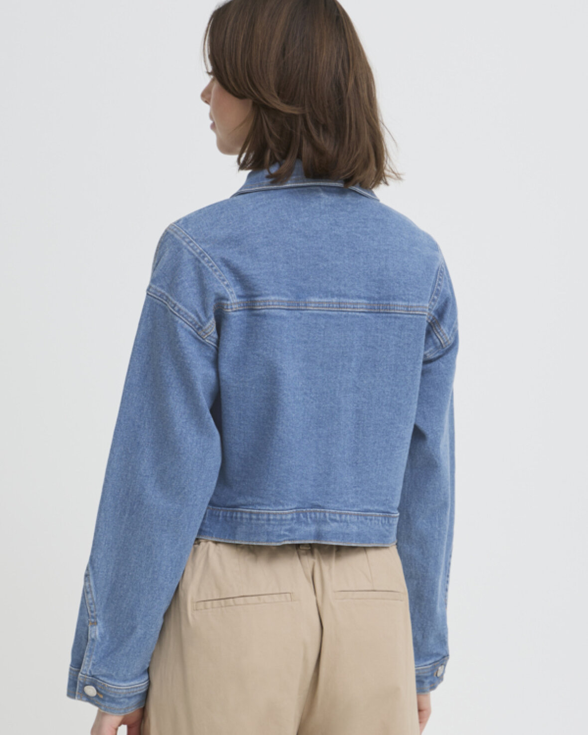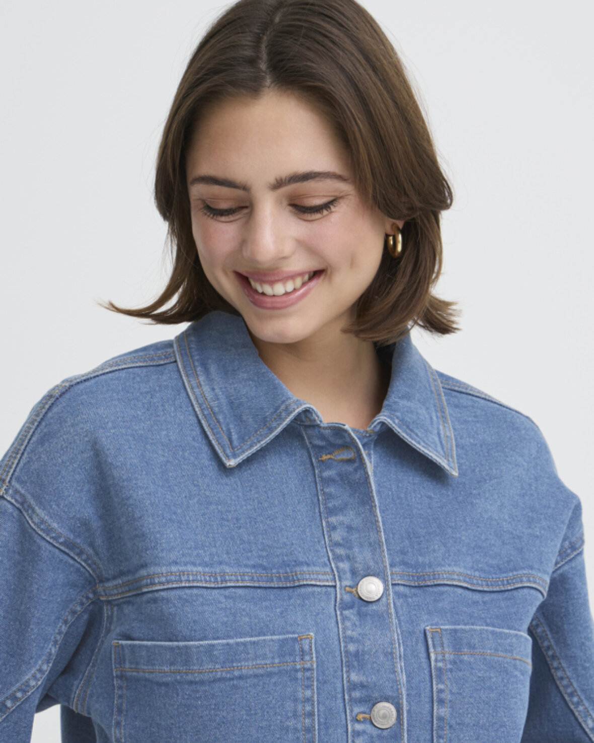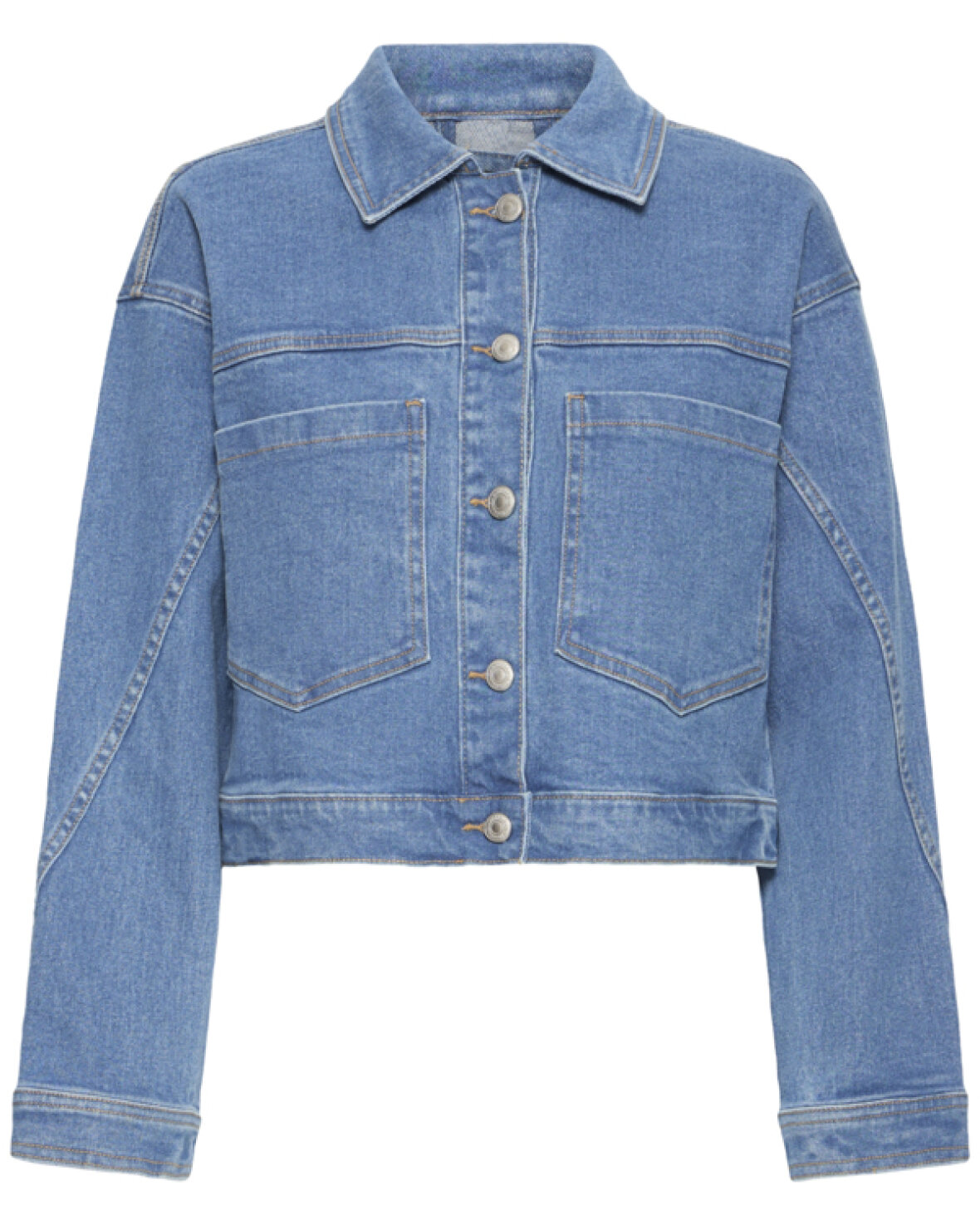 FRLORELEI JAKKE 1 - FRANSA Denimjakke med boxy pasform, struktureret krave og knaplukning. Store frontlommer og lige ærmer giver et stilfuldt, moderne udtryk.Kvalitet: 98% Bomuld, 2% Elastan