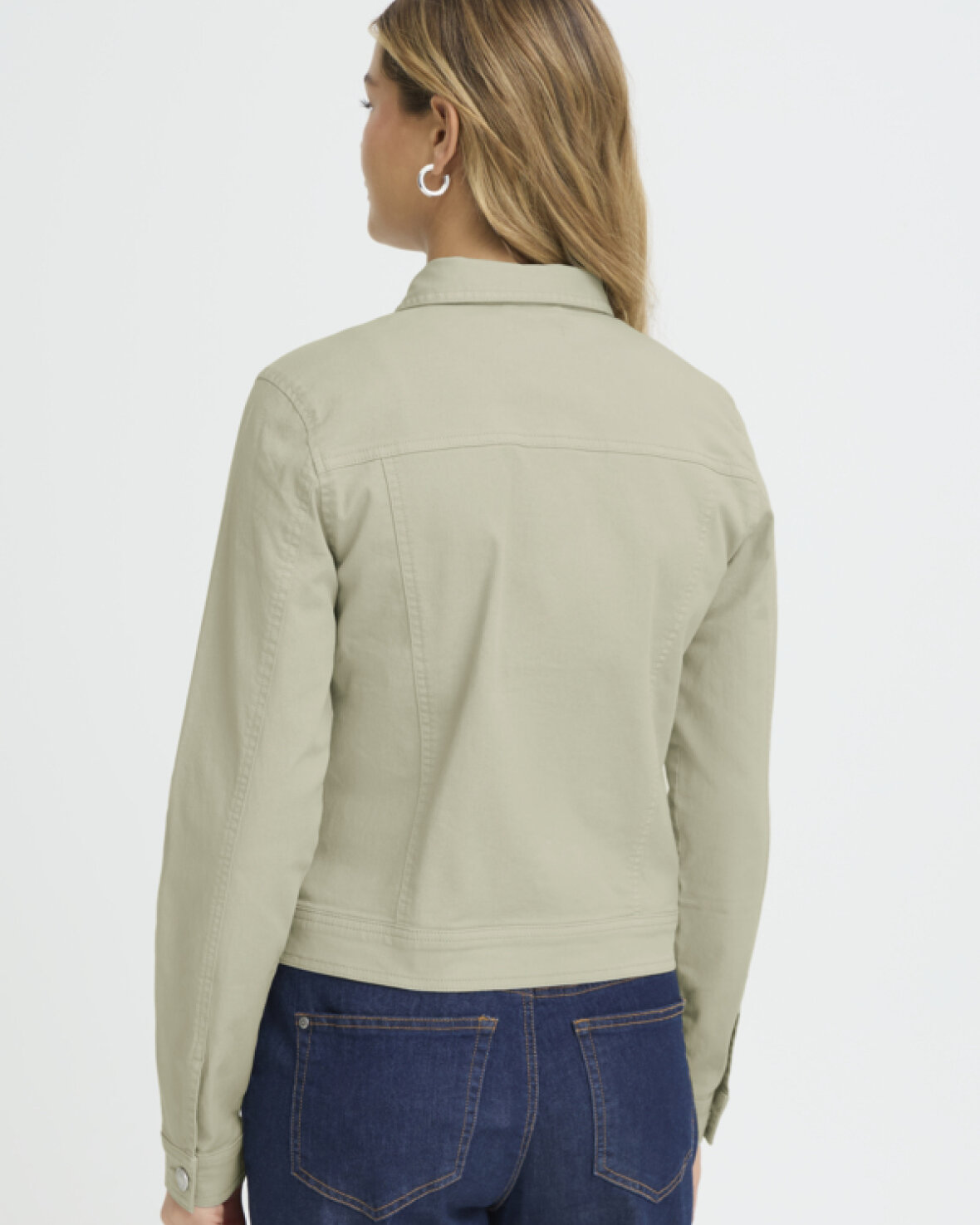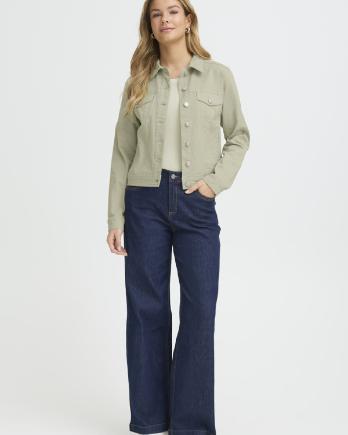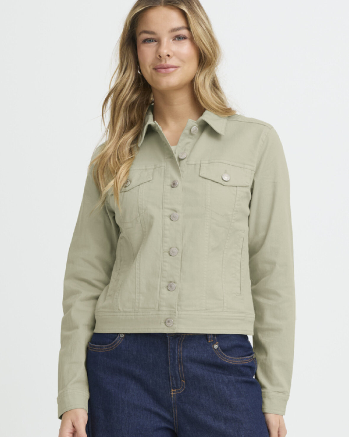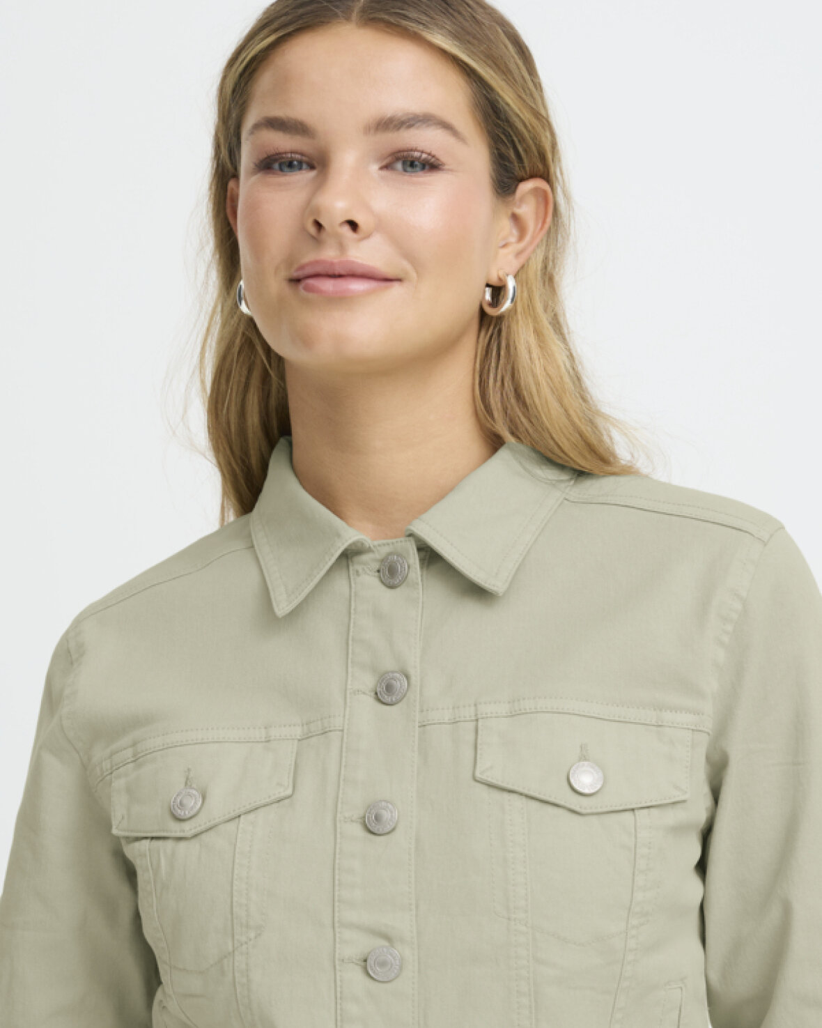 FRTWILL 1 JAKKE-FRANSA Denimjakken har en lige, struktureret pasform med klassisk krave og gennemgående knaplukning. Brystlommer med flap og lange ærmer fuldender looket.