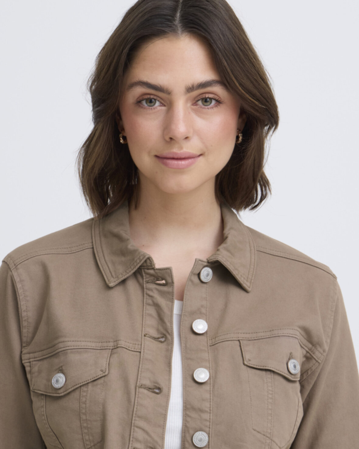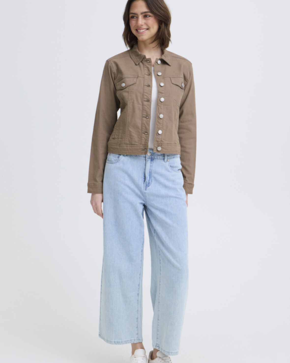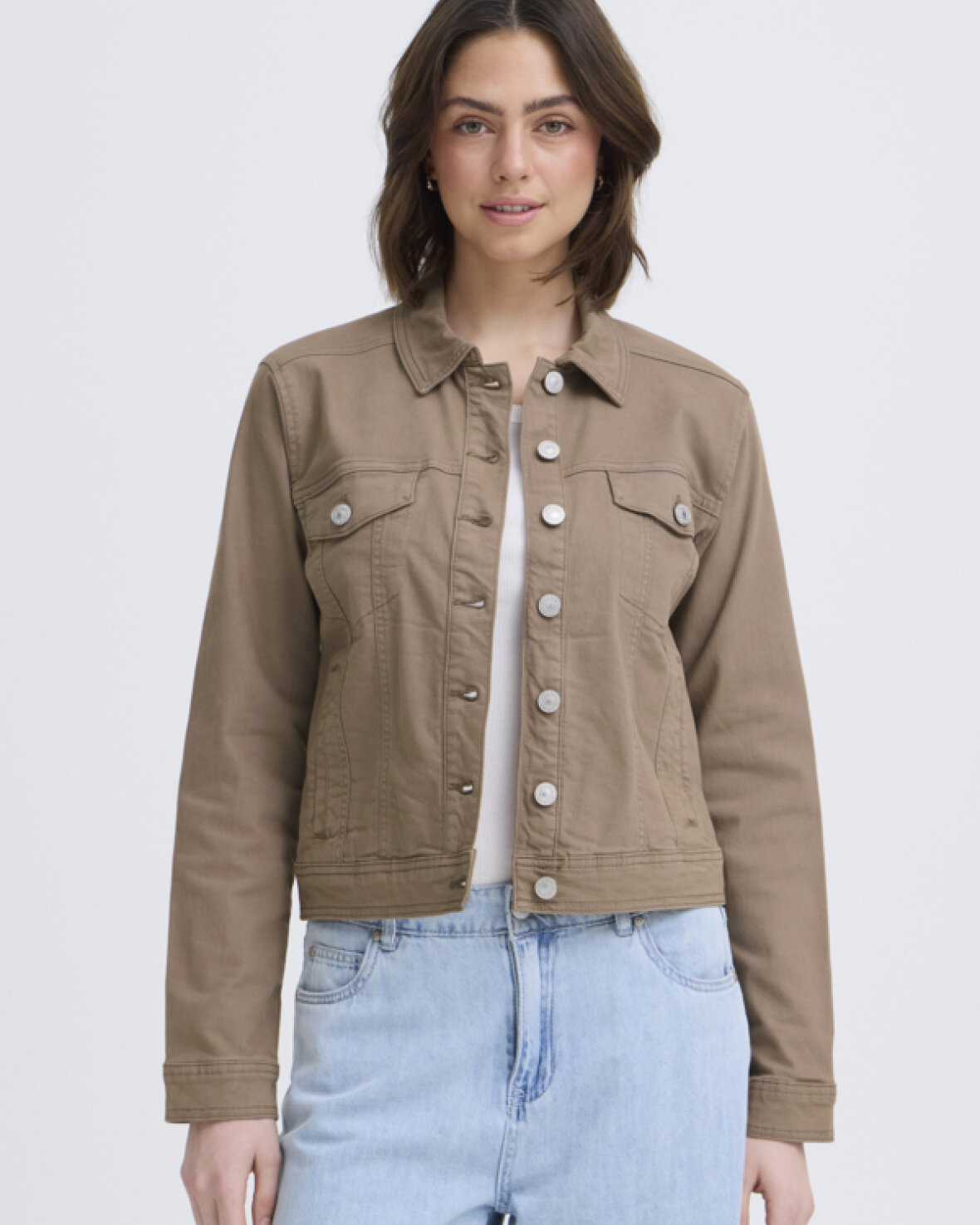 FRTWILL 1 JAKKE-FRANSA Denimjakken har en lige, struktureret pasform med klassisk krave og gennemgående knaplukning. Brystlommer med flap og lange ærmer fuldender looket.