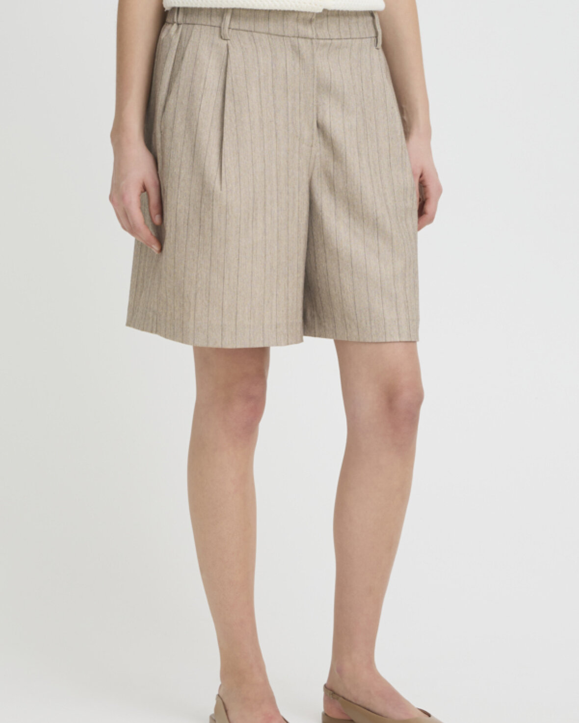 FRALEX SHORTS - FRANSA Skræddersyede shorts med lige snit og mellem længde, diskrete lodrette striber, sidelommer og bæltestropper. Blød overfladestruktur.Kvalitet: 86% Polyester, 10% Viskose, 4% Elastan