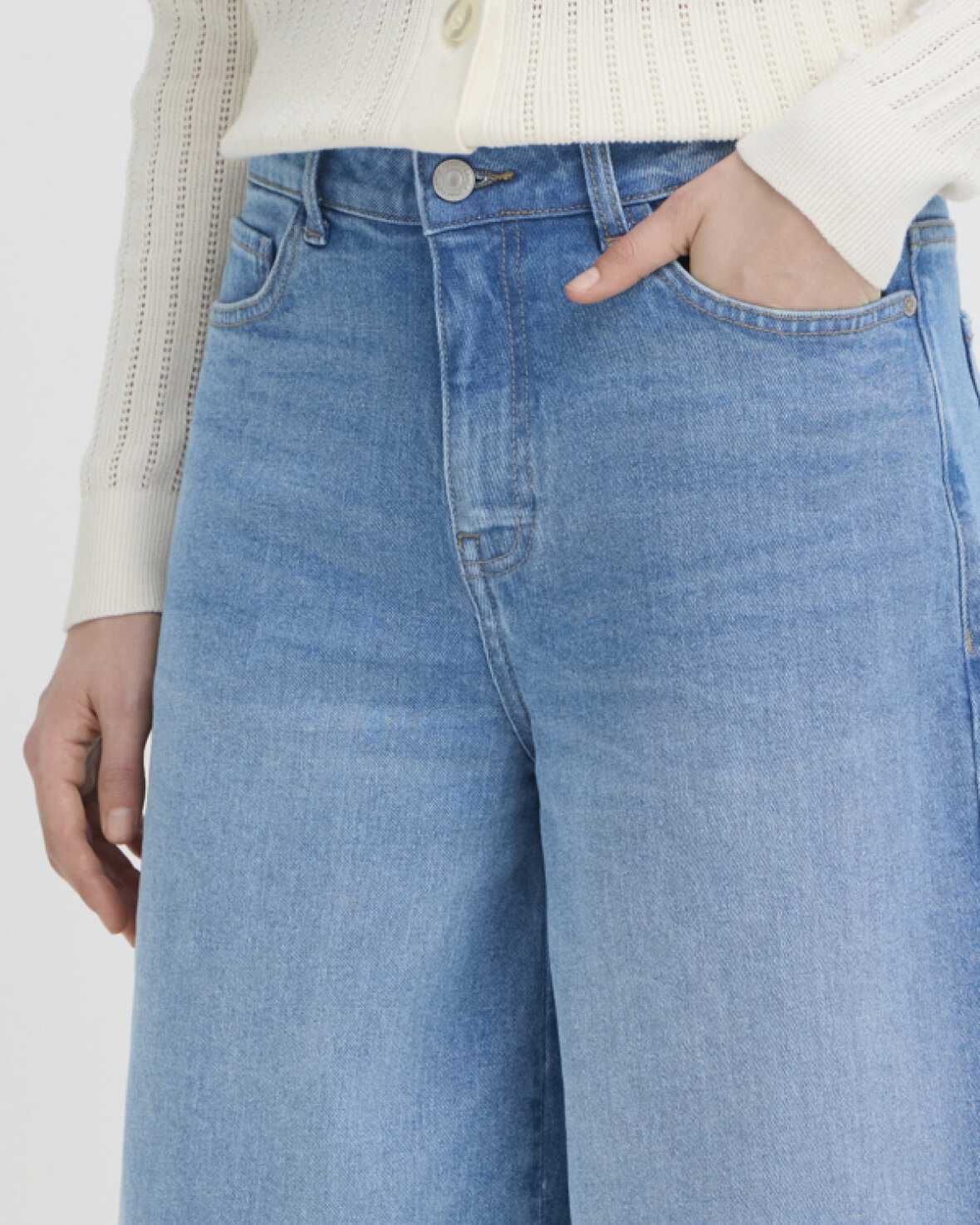 FRLORELEI SHORTS 1 - FRANSA Denim bermuda-shorts med vidde og knælængde samt fem klassiske lommer. Fast linning, bæltestropper og enkel lukning giver et stilrent udtryk.Kvalitet: 98% Bomuld, 2% Elastan