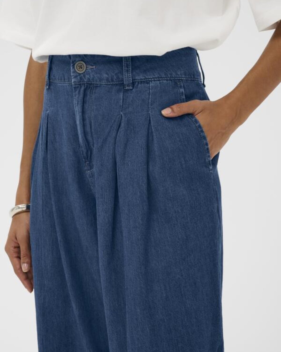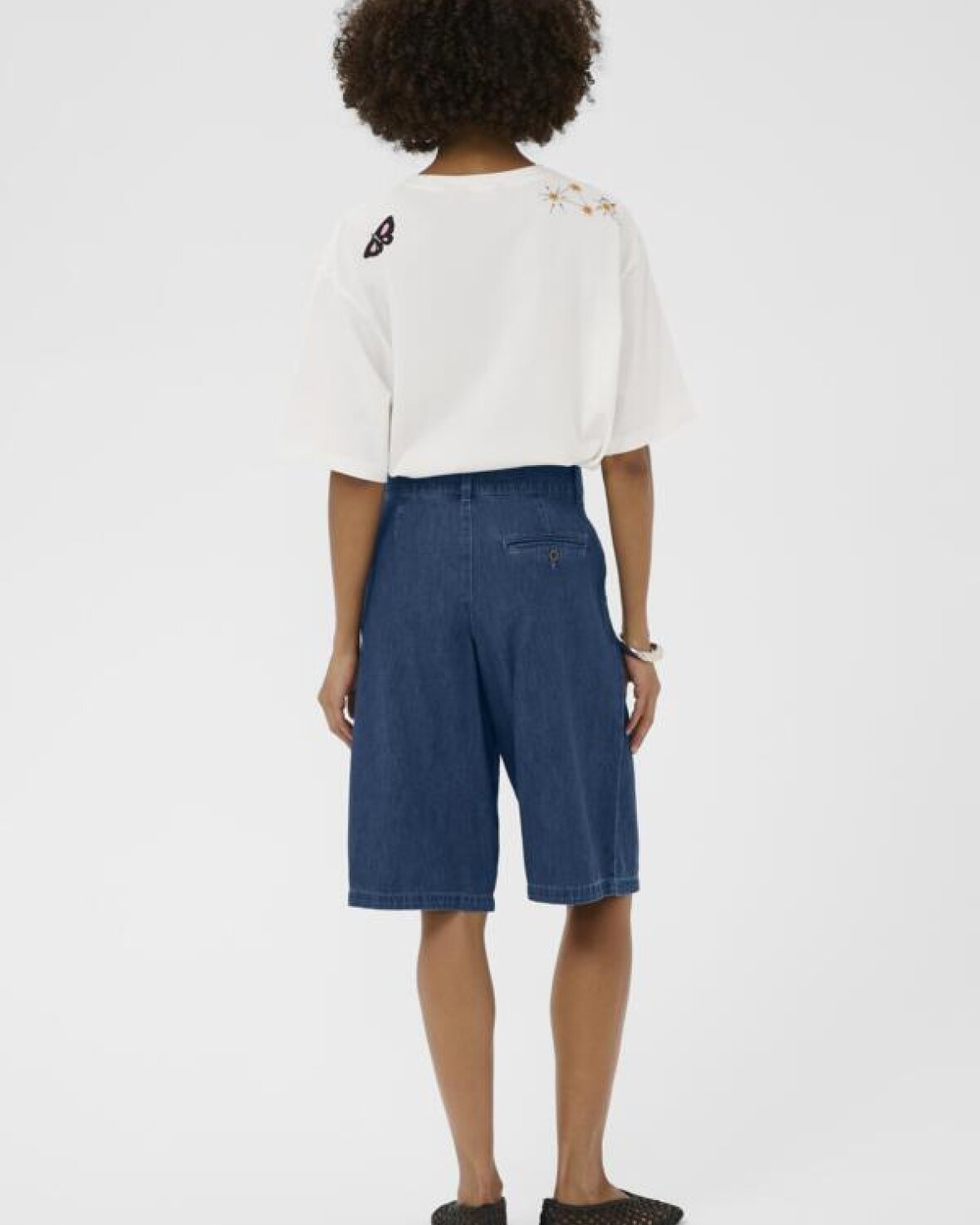 CULAVA ARPA CITY SHORTS Denimshorts med lige, knælængde silhuet og blød finish. Designet med frontlæg, bæltestropper og klassisk knaplukning for et afslappet cool udtryk.Kvalitet: 90% Bomuld, 10% Lyocell