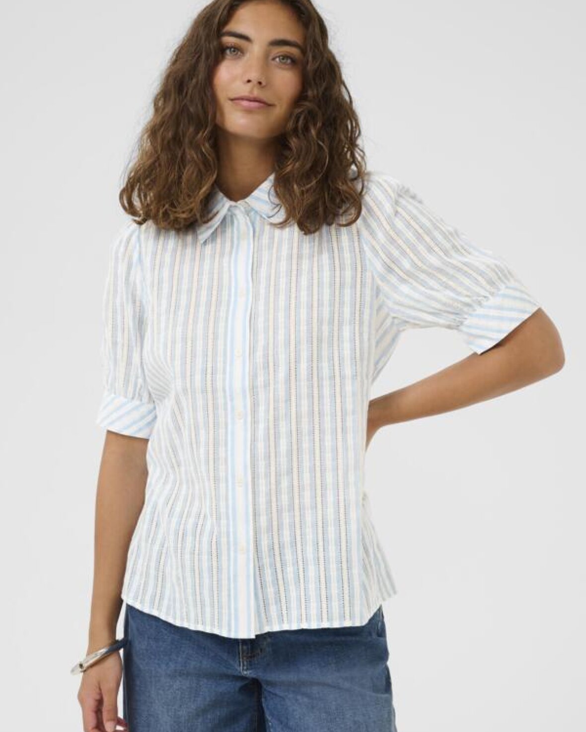 CUHENA SHADIA SHIRT - CULTURE Elegant og tidløs klassisk skjorte med stribemønster med et let og behageligt materiale, der gør den perfekt til både hverdag og mere formelle lejligheder. Den har en afslappet pasform, der sikrer komfort hele dagen, samtidig med at de fine detaljer som krave og knaplukning giver et sofistikeret look.Kvalitet: 100% bomuld