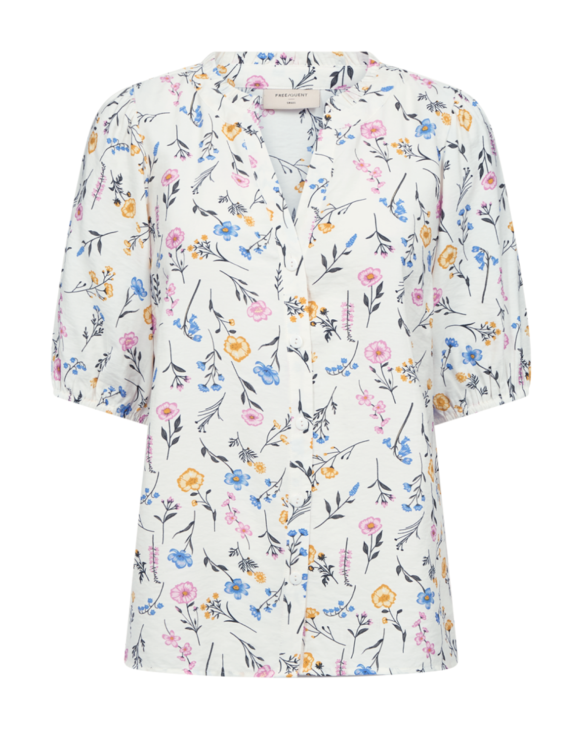 FQMOLLI SHIRT-FREE/QUENT er en sød skjorte i en let kvalitet. Skjorten er enkel i modellen med en løs pasform, knaplukning langs fronten, halværmer med elastikkant samt V-udskæring med flæsekant.Kvalitet: 84% LENZING™ ECOVERO™ Viscosefibre, 16% Polyamid