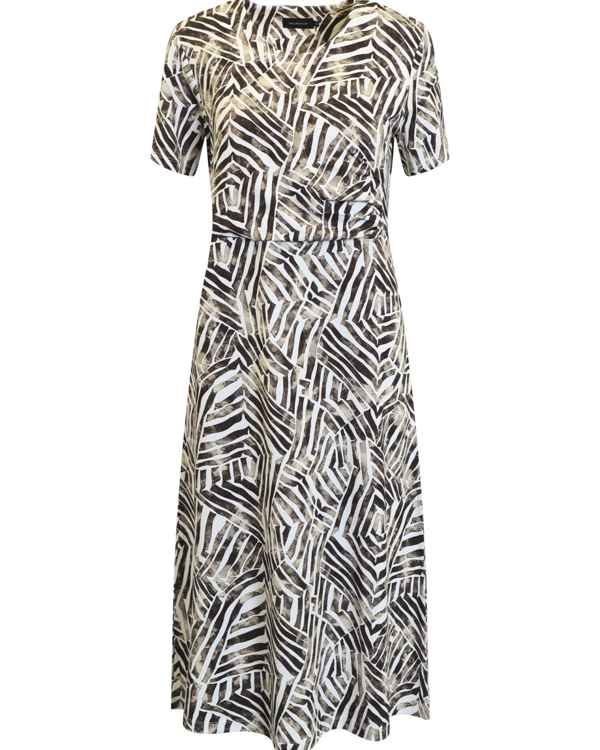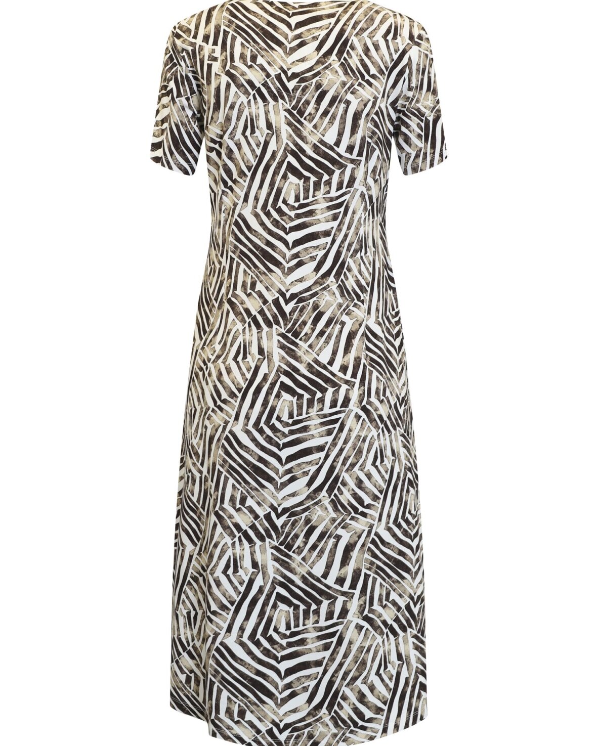 KJOLE 220433 - BRANDTEX Smuk og feminin kjole med et elegant mønster i varme nuancer. Kjolen har en let og behagelig pasform, der falder flot og gør den ideel til både hverdag og særlige anledninger.Kvalitet: 95% viskose, 5% elastan