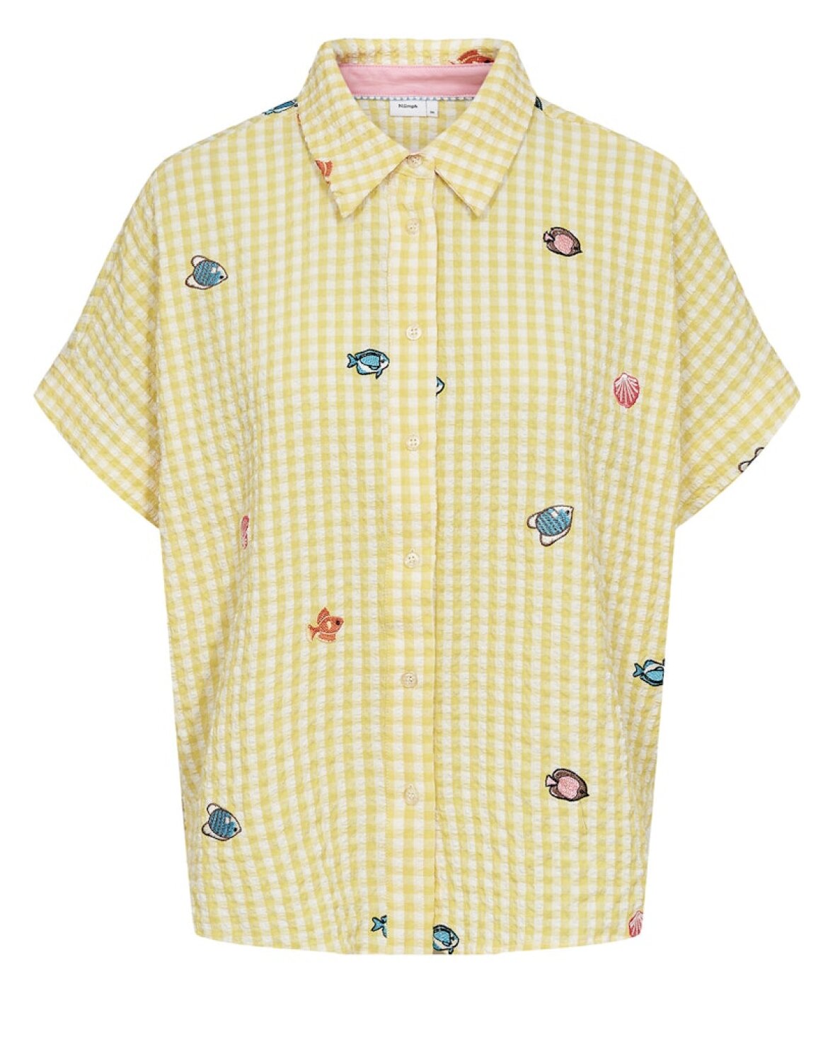 NUSURFER SLEEVELESS SHIRT - NÜMPH er en smart let og casual ærmeløsskjorte med et afslappet og moderne udtryk. Den har en løs pasform, klassisk krave og knaplukning, som giver et tidløst look med et afslappet twist med de fine figurprints.Kvalitet:49 % Bomuld, 49 % Polyester, 2 % Elastan